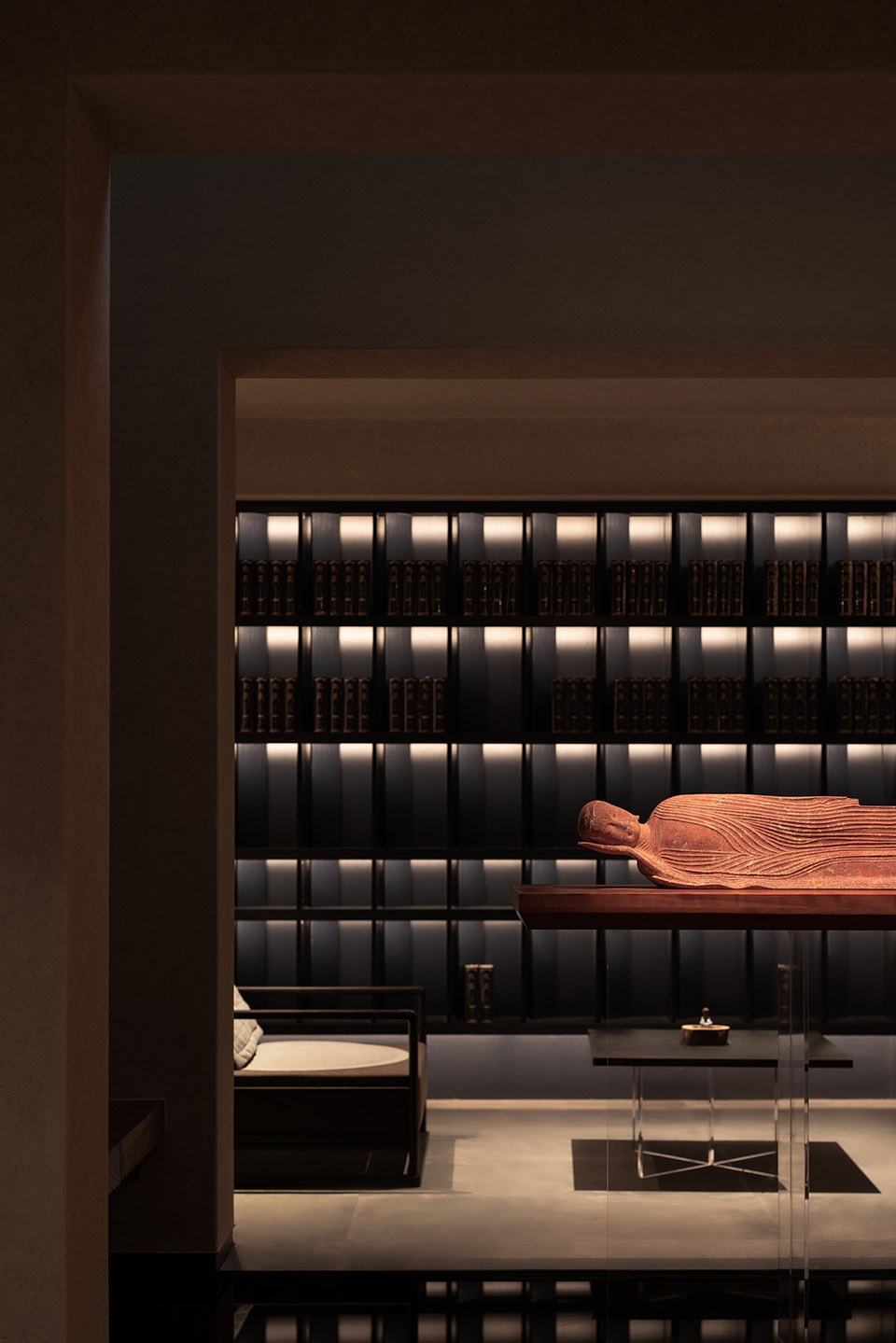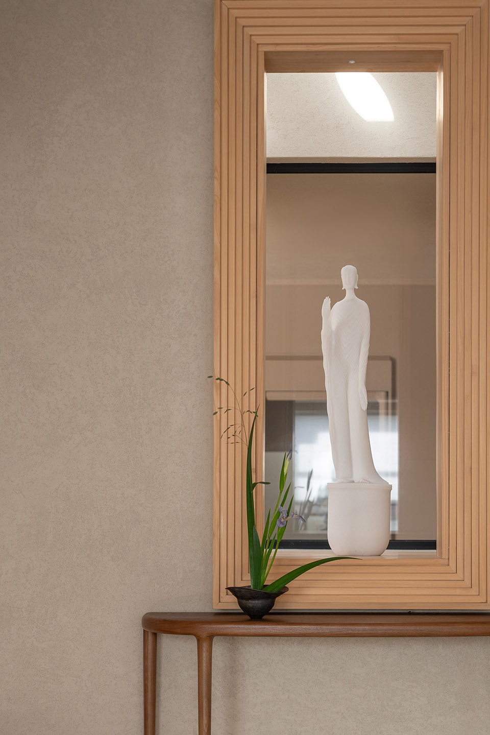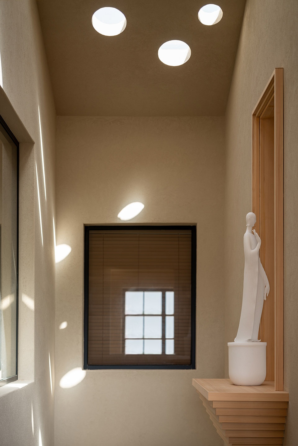 我们也特地在家的三层与地下一层的空间里,邀请青年雕塑艺术家蒋晟老师打造了两件雕塑作品,为这片生活的道场增添了禅静的气息。