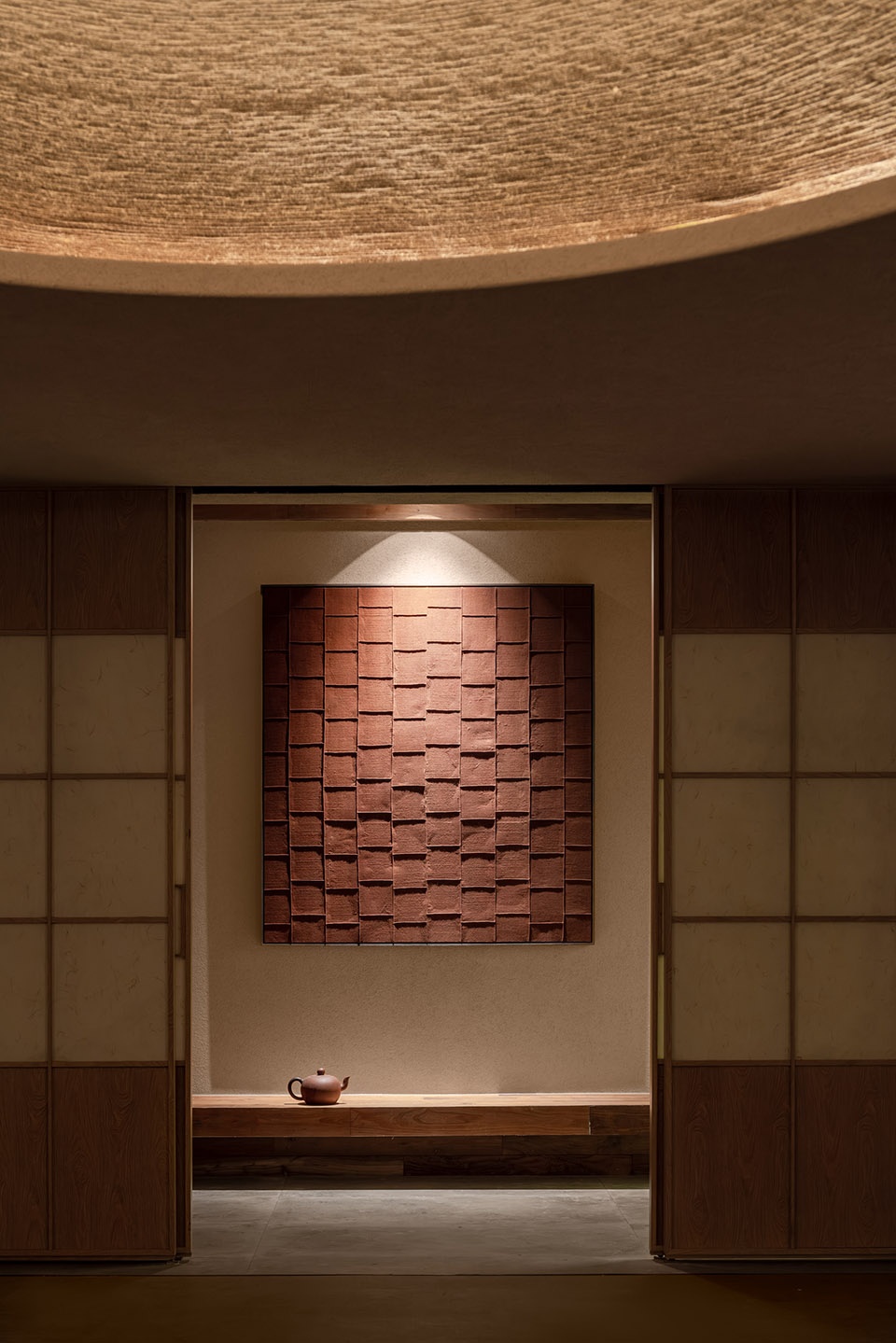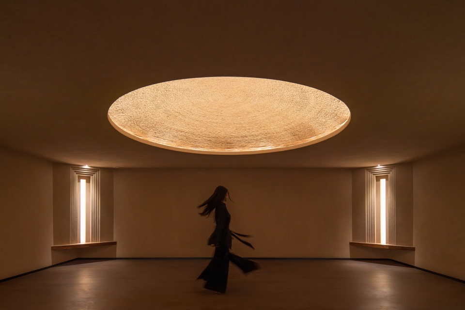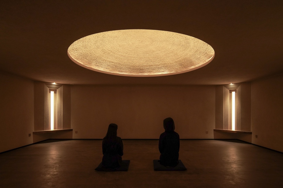 1500米的麻绳,耗费整整7天,缠绕起直径3米的穹顶。缠绕,再解缚,抬头仰望或俯身坐下,是一次又一次的提醒:修行就是有结,再解结。四面的立柱亮起微光,这座地下的“宫殿”便有了启示的旨意,是日常生活中梦想聚集的地方,犹如庇佑探索无知与未来的原始剧场。