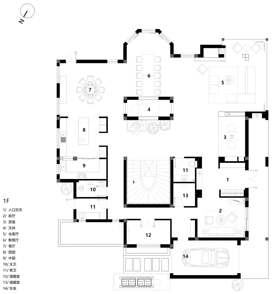 ▼一层平面,ground floor plan