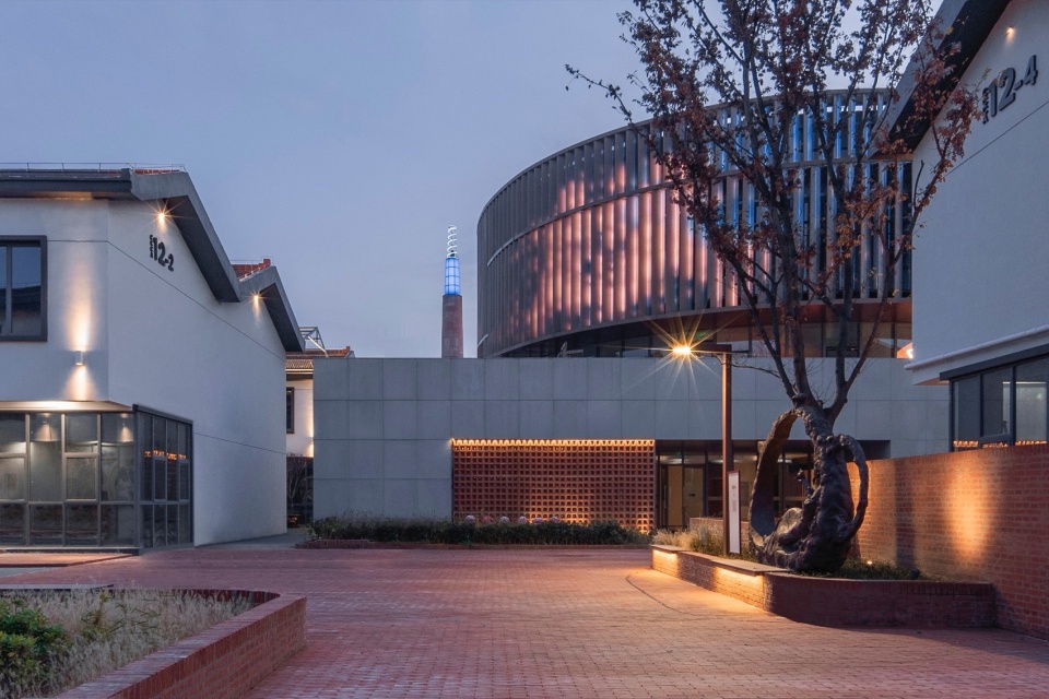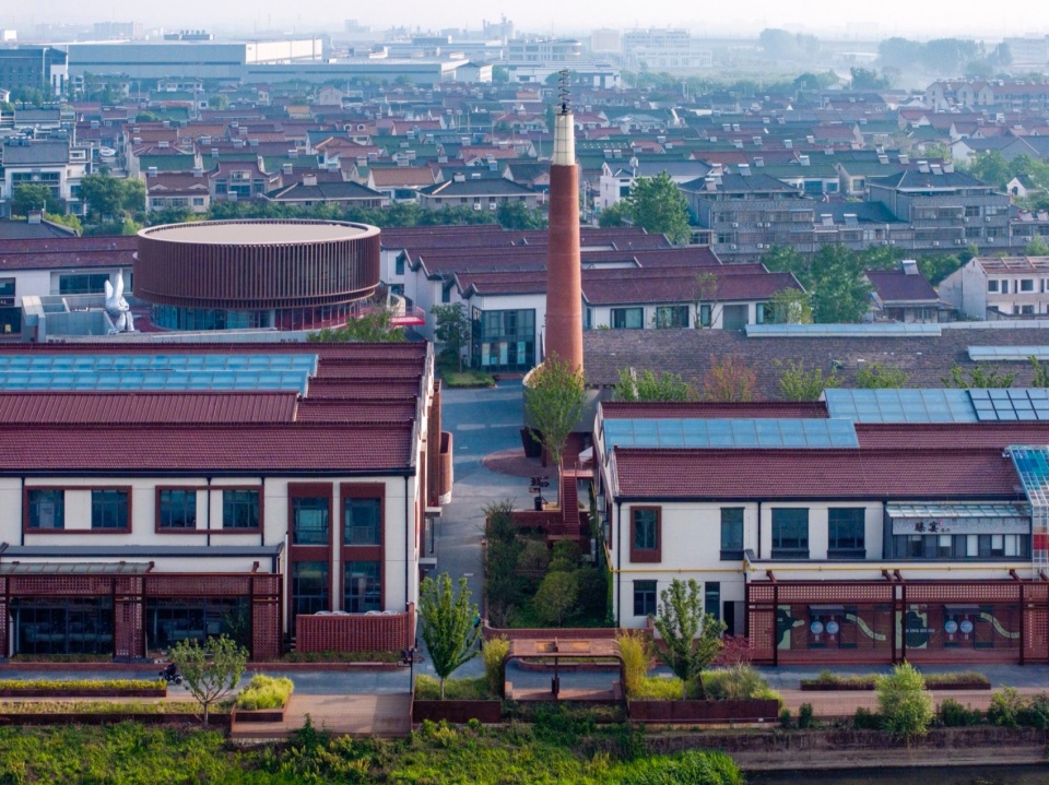 场地内红砖铺就的工坊街巷延续工业时代的肌理,与老烟囱、保留老厂房构成跨越时空的对话场域;工字钢框架、攀缘植物、围合的庭院空间内点缀吴为山大师的陶艺作品。不同时空元素的魔幻拼贴,创造出富有叙事性的沉浸式文化体验空间。
