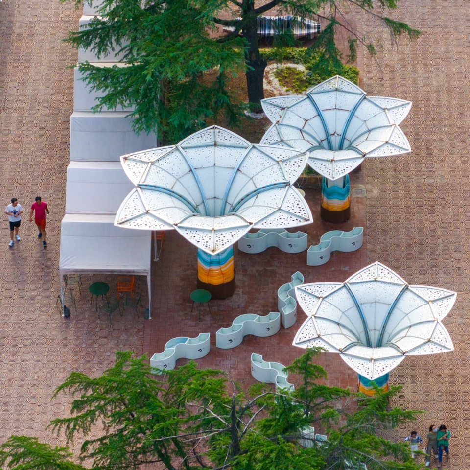 To address the monotony of the existing building facades, an innovative solution blends industrial heritage with local materials: structural frameworks built with I-beams are clad with traditional ceramic lattice brick curtain walls, complemented by meticulously arranged multi-layered vegetation. This composite approach creates a three-dimensional rhythm of solid and void—the steel skeleton outlines industrial memory, while the translucent ceramic brickwork and foliage interplay to compose a dynamic symphony of light and shadow that shifts with sunlight. The design not only fosters dialogue between architecture and landscape but also, through inventive material expression, revitalizes industrial heritage into vibrant transitional spaces that pulse with life.