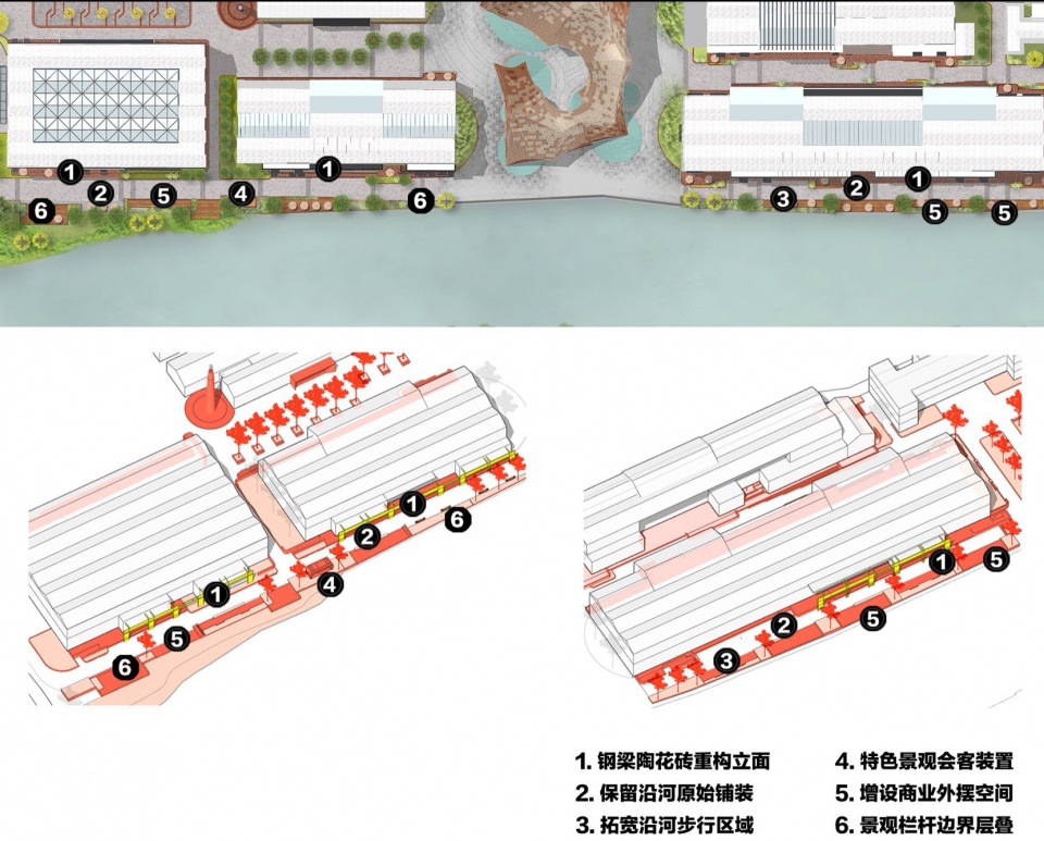 The design achieves an organic integration of architecture and landscape, skillfully balancing ecological preservation, historical continuity, and public vibrancy. While retaining the original natural riverfront interface, it strategically expands pedestrian space through terraced waterfront platforms, significantly enhancing both accessibility and recreational comfort in public areas.