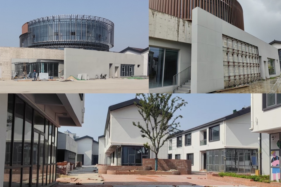 在保留既有建筑主体结构的前提下,仅对不足8%的非承重外墙进行局部拆改与增建,以最小干预实现空间活化。设计以回收陶砖为媒介,通过材料叙事重新编织场所记忆——将拆迁废料转化为具有文化符号意义的景观装置,赋予废弃材料新的生命,在有限的时间与空间条件下,以精细化微调实现功能升级与空间重构,探索一种低冲击、高灵活性的工业遗产再生策略。