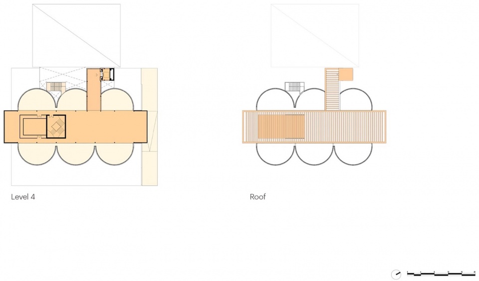 ▼筒仓四层与屋顶平面图,Silo floorplan level 4 + roof