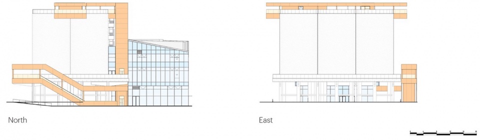 ▼筒仓北立面与东立面,Silo elevations north + east