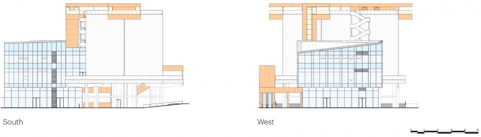 ▼筒仓南立面与西立面,Silo elevations south + west