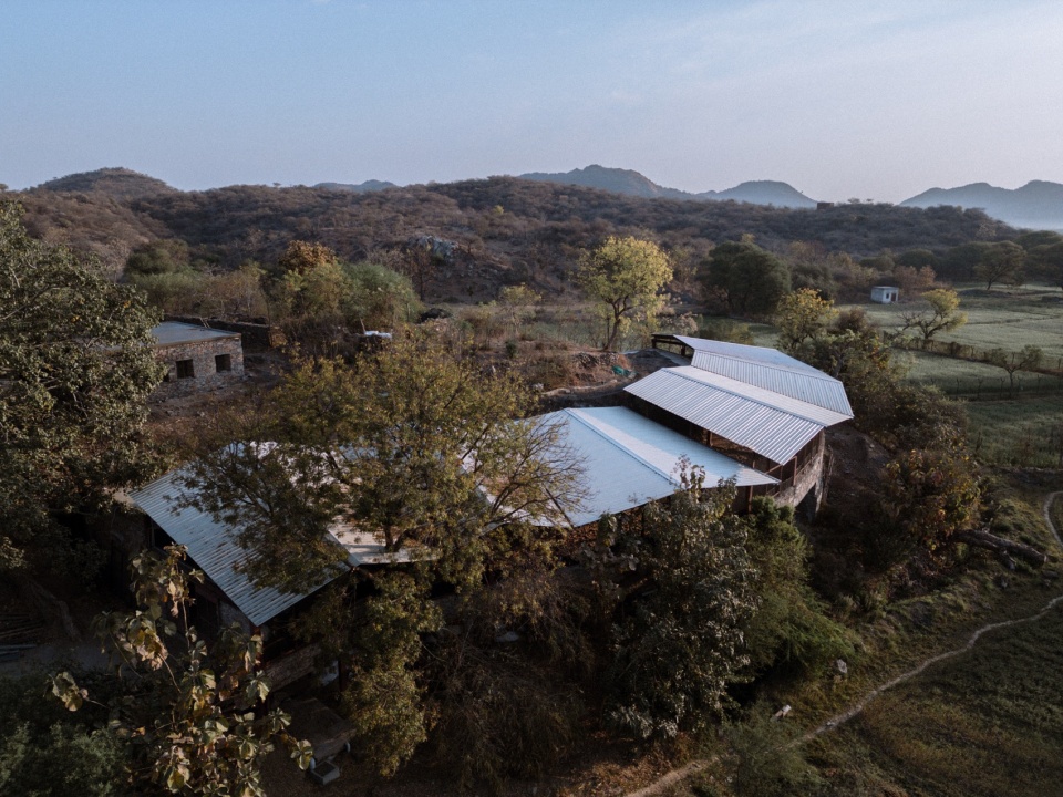 Anglo-Indian practice Studio Saar has completed Gaushala, a new sustainable dairy facility designed to accommodate a herd of 40 rare and indigenous Gir cows in the heart of the Aravalli Hills, south Rajasthan. With a name that means ‘cowshed’ in Hindi and Sanskrit, Gaushala is located on one side of a rocky outcrop, on a site that was chosen by the architects to preserve the surrounding farmland and trees. The location provides natural shelter from the prevailing westerly winds while allowing a gentle breeze to enter, discouraging flies and dispersing odours. The complex nature of the site, with its rock formations and large tree roots below the surface, meant that the design had to be adapted during the construction phase, leading to a complex, contextual response to the brief.