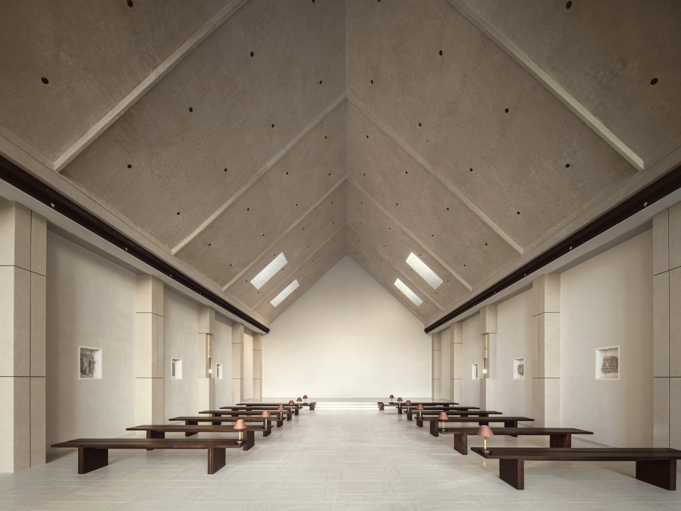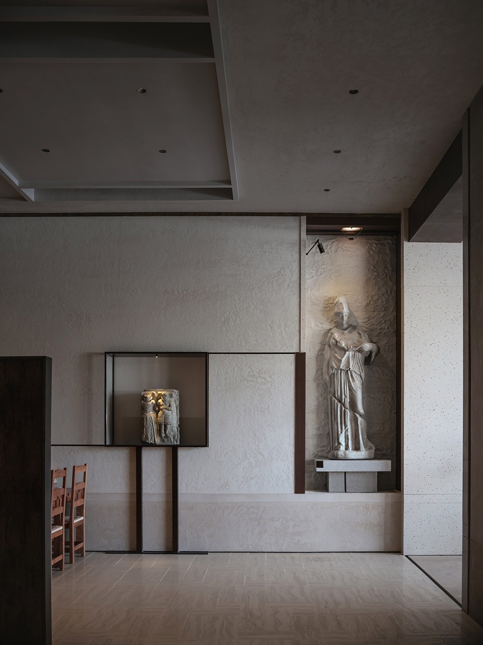 The original skeleton of the building remains—its scale, in quietude;its logic of light, still breathing in a slow rhythm.Timber is embedded between concrete and stone,warm yet restrained—a beating heart, quietly pulsing within the hardness.In the manner of Carlo Scarpa’s deconstructivism,details are spoken in whispers.Geometry interplays,forming a solemn and disciplined rhythm.Air nearly solidifies—even murmurs carry weight.This is a witnessing,gently tilted by light.Unassuming, yet imbued with gravity.The space, in its eternal posture,engraves a fleeting affirmation.The spiritual axis runs through the entire Luyue Chapel.Sanctity begins with light — a quiet cascade of molten gold.The space ascends, drawing perception toward a voiceless height.Concrete swallows the echo of footsteps.Through patient abrasion, textures fade — emotion folds inward.There is no excess, only the quiet discipline of structure holding intention in place.Here, you are not the central figure,but a thread in the ritual— woven with light and time,to utter the quiet promise: “I do.”