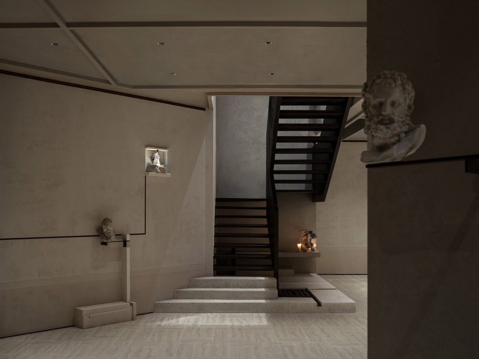 Wind dwells between light and shadow, time unwinds in softened pause.Terraces unfold without direction — harboring a freedom held in quiet suspension.Air and sight weave a pause in language; edges soften, feelings gently unwind.Here, architecture releases its grip on structure, returning all to the flowing air.The spiral staircase hangs in gentle curves, like wind’s trace drifting across a motionless façade.Its arcs ease gravity, lines that elude order.Between ascent and descent, it is not a path, but a transition.guiding the body into a new rhythm:quiet, nonlinear, with no destination needed.