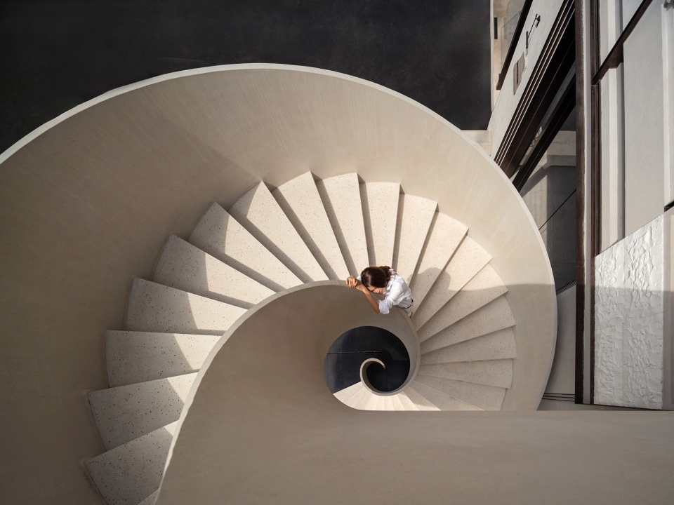 ▼旋转楼梯如风迹游走于静止的立面之上,The spiral staircase like wind’s trace drifting across a motionless façade