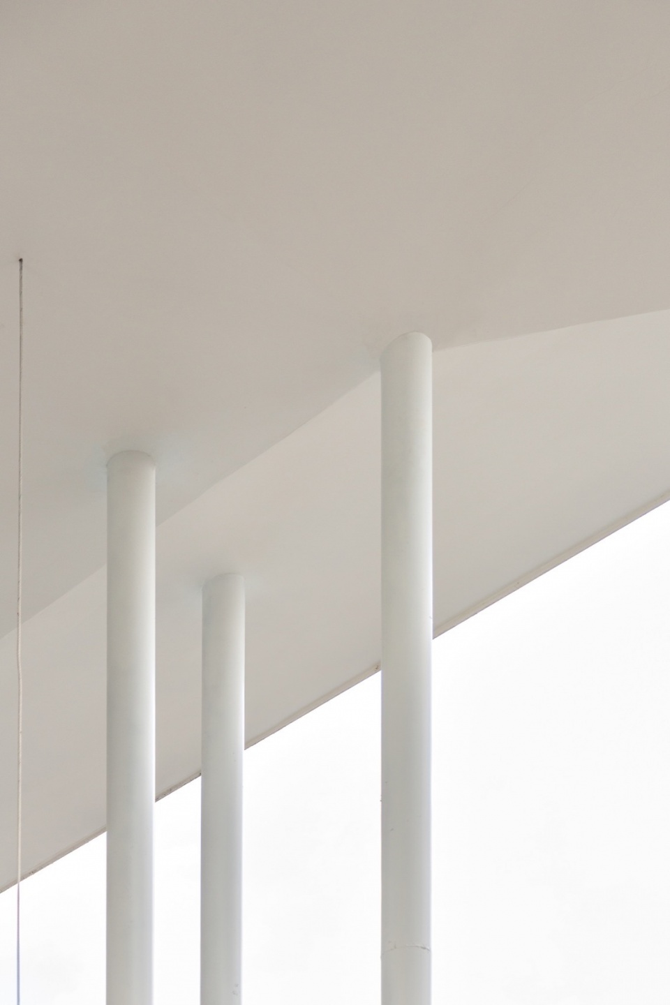 The rhythmic metal structure, composed of slender columns and tension elements, was inspired by the image of a harp, functioning as an organizing matrix for the space. The structure is left exposed, without cladding, clearly communicating the building’s constructive logic with formal economy. The extended roof, with expressive cantilevers, creates shaded transitional zones between interior and exterior.The spatial arrangement of the volumes beneath the roof was influenced by compositions from Russian Suprematism, emphasizing the juxtaposition of primary geometric shapes in varying orientations and visual tensions. This influence guides the fragmented positioning of the volumes beneath an open orthogonal grid, giving the ensemble an abstract and dynamic reading. The resulting spatiality allows for multiple perceptions of the building as one moves around it.