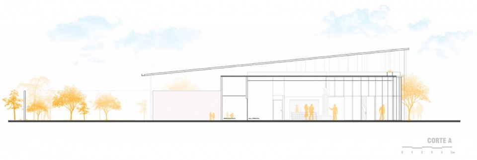 Although initially planned as a commercial space, the building was also designed to host rotating cultural exhibitions, functioning as a mixed-use urban infrastructure. The architecture proposes an accessible space for the community, articulating public and private functions without formal hierarchy. The pavilion acts as an activator of the urban space, with the potential to host art, commerce, and social interaction.