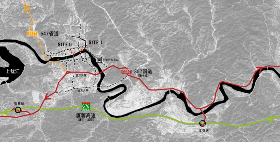 Project location: Plot II of the original Dongmen Farmers’ Market on the north bank of the Youjiang River in Shangyou County, Ganzhou
