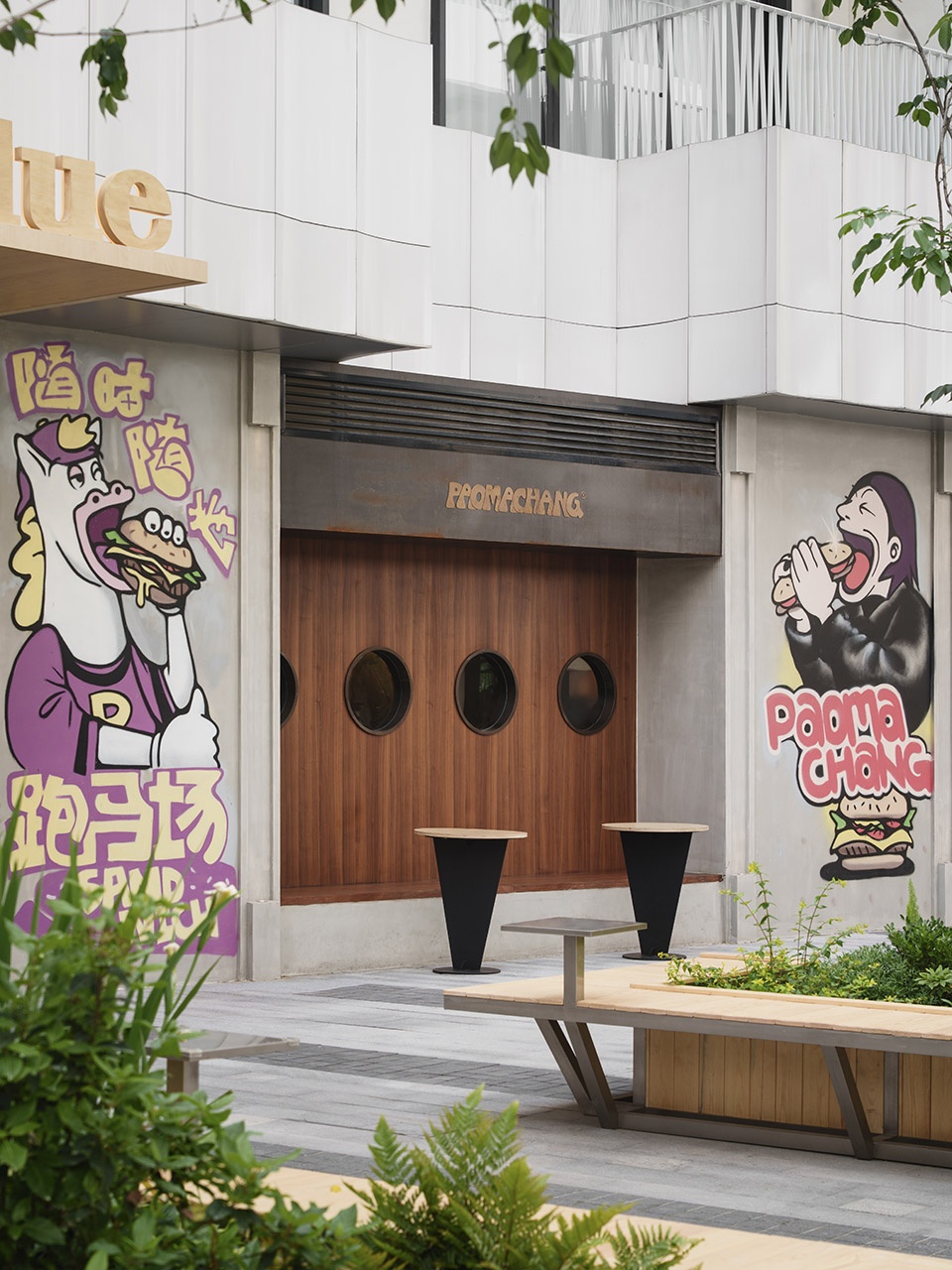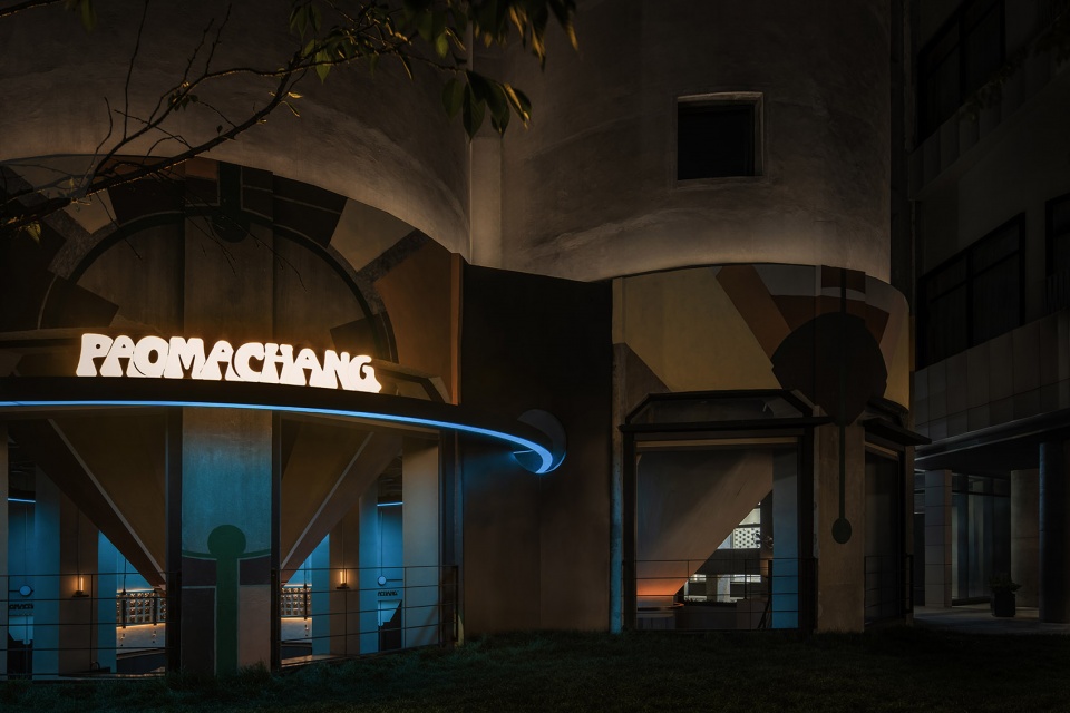 Nestled within Shanghai West Bund Dream Center—formerly the site of Asia’s largest cement plant, adjacent to the Huangpu River—PAOMACHANG expands its brand narrative through two interconnected spaces: an immersive “daytime café to nighttime bar” hybrid venue, and its flagship sandwich store across the street. The design revitalizes industrial heritage by transforming six massive conical storage silos into functional stages, infusing raw concrete textures with PAOMACHANG’s signature retro-American aesthetic and contemporary energy.