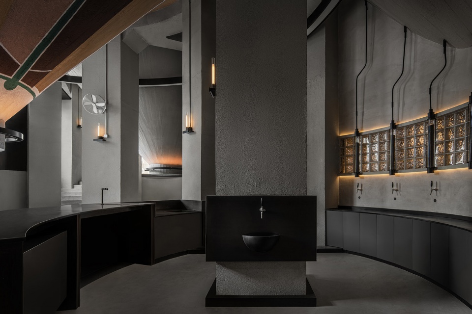 Across the street, PAOMACHANG’s flagship sandwich store echoes the silos’ conical geometry through matching proportions, industrial materials, and textures. Though functionally distinct, the two spaces speak a unified design dialect, amplifying the brand’s visual cohesion and sense of place.