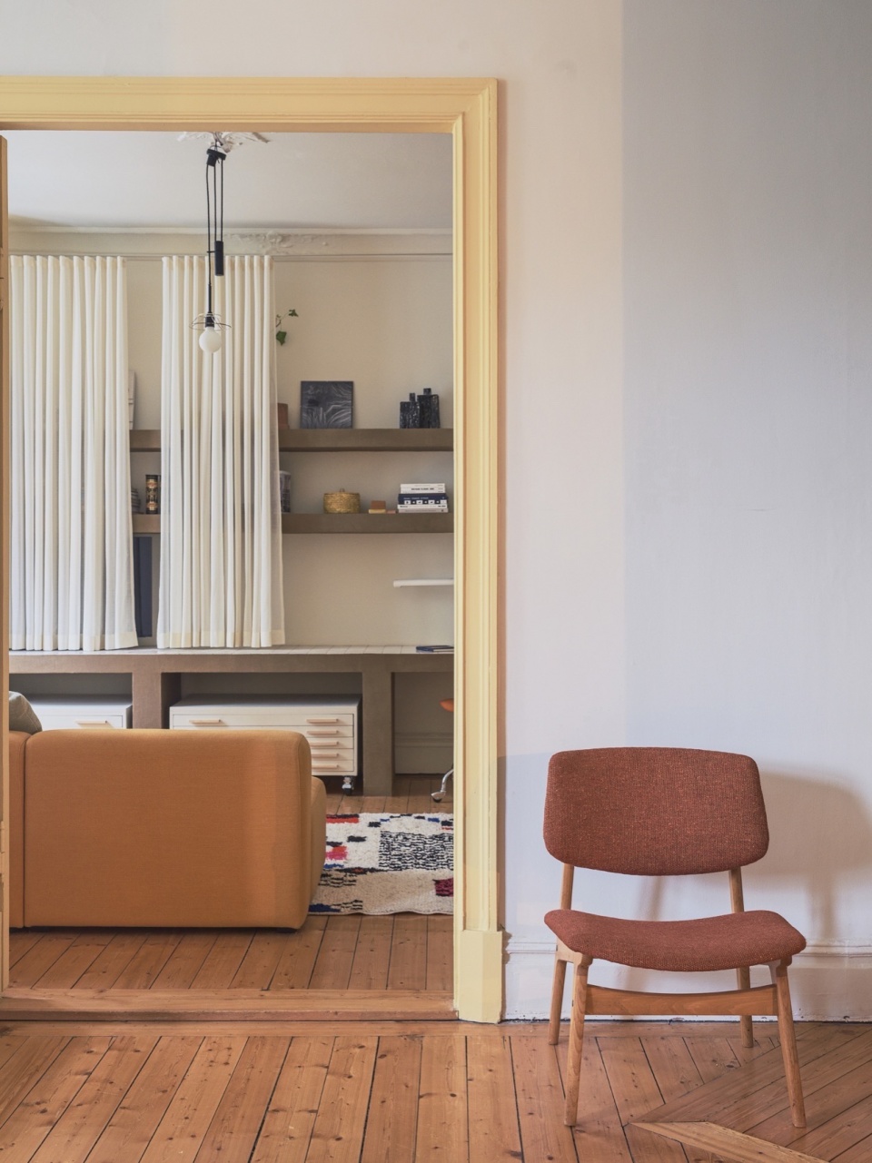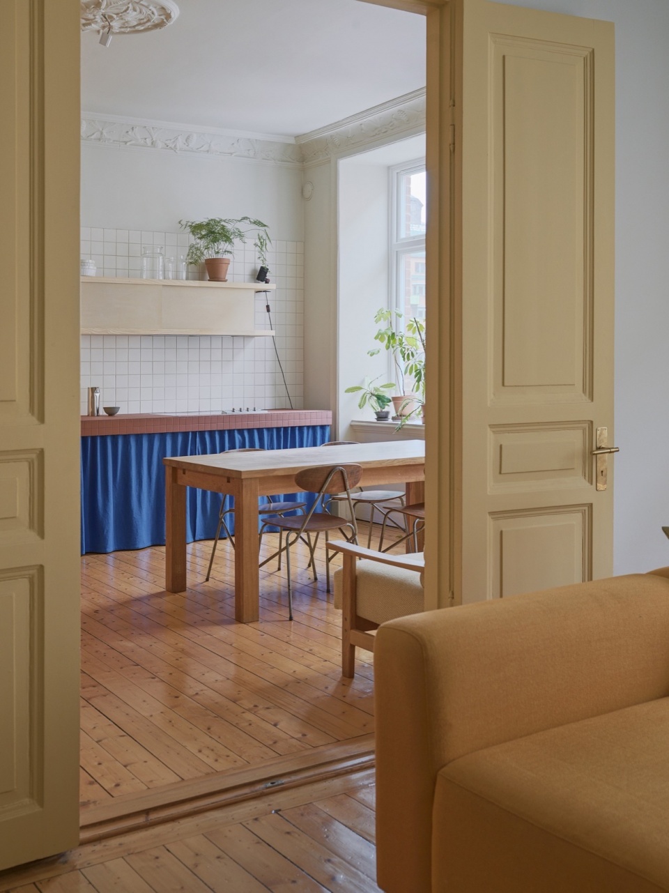 Located in a historic building in Gothenburg, this apartment renovation seeks to balance the building’s early 20th-century character with a contemporary approach to materiality, spatial organization, and domestic life. The design prioritizes tactile surfaces, soft transitions, and custom joinery to reinterpret the apartment for modern living while maintaining a dialogue with its past.