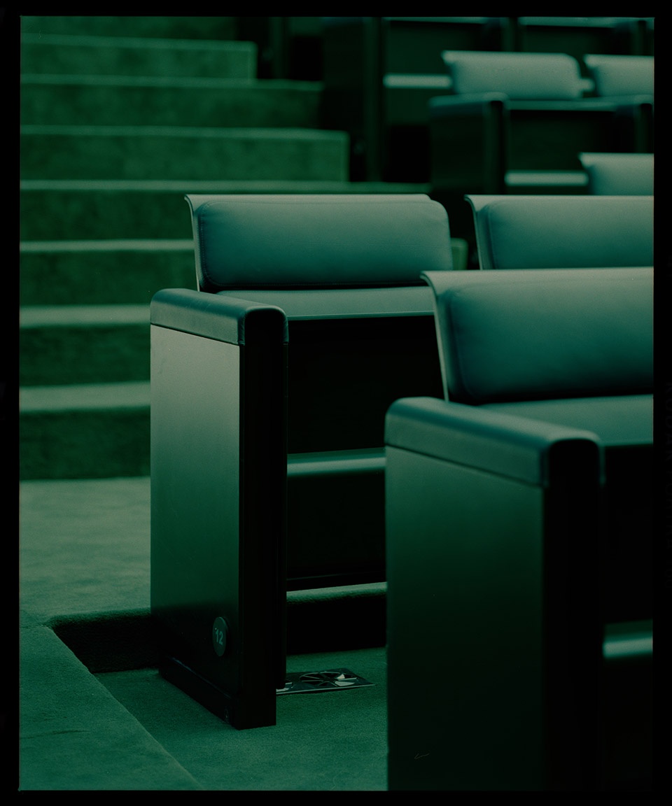 The Centre de Congrès is located between the first and second phases of the master plan. It acts like a hinge joint, fitting together the two “arms” of the campus – an avenue of buildings and a more condensed cluster – to take people from one side to the other. Gesturing towards this idea of passage is a series of porticos along the edge of the site. Here, the same bright tiles are used for paving and cladding, then continue into the building for a natural progression from the patio to the lobby. Inside, decisions over the material treatment and furniture design are given as much importance as the urban strategy – a ‘total design’.