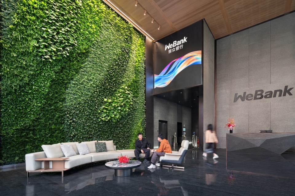 由J&A杰恩设计担纲室内设计的中国首家互联网银行的全球总部——深圳前海微众银行总部大厦,现已正式投入使用。这座承载国家级金融改革使命的144米垂直地标,以前海自贸区15.3万㎡的生态智慧体量,重新定义金融科技办公样本。