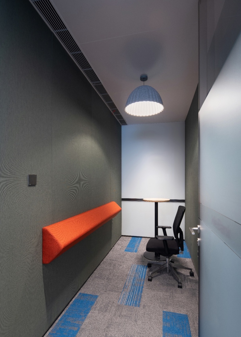 Apart from the technical aspects, the details of the space also reflect sustainability. The prefabricated design is adopted, and fire-resistant glass partitions, sound-absorbing felt boards, etc. all use modular prefabricated design. J&A aspires for each space to seamlessly integrate urban planning, architectural logic, and interior scenes, all while balancing the client’s strategic requirements.