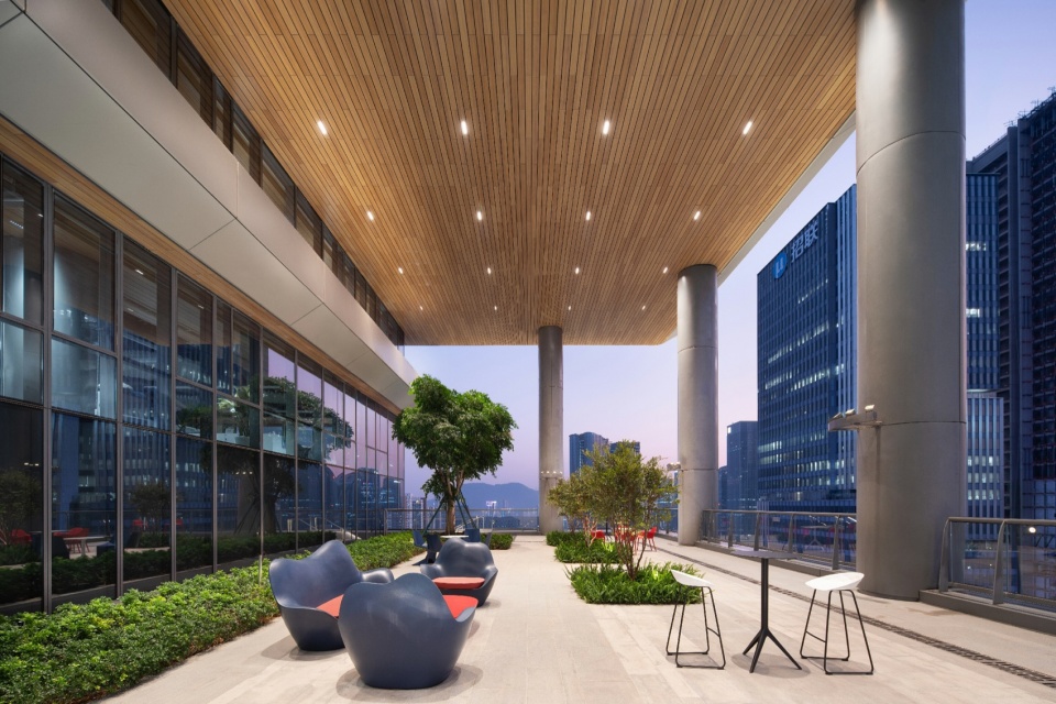 深圳前海,作为国家新一轮改革开放的战略支点,正加速生长为引领粤港澳大湾区的现代化标杆腹地。在建成密度最高的桂湾片区,写字楼群与生态绿轴交错延伸,J&A负责室内设计的深圳前海微众银行总部大厦坐落于此。项目总建筑面积15.3万㎡,涵盖办公、生活、社交等多元场景。J&A引入“垂直森林”设计概念,将其打造为以空间为载体,平衡金融效率与人文温度的金融科技生态绿洲。