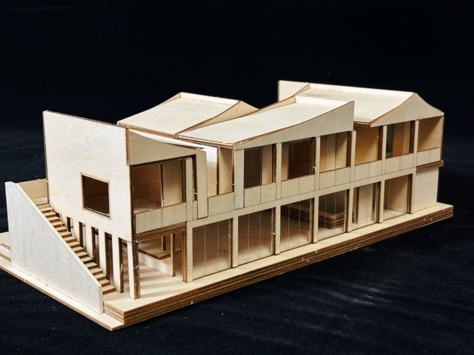 We created open verandas on the south and east sides by extending the platform on the second floor and retreating the volume on the first floor, in combination with the steel columns. The verandas not only serve as connecting passages between the buildings but also enhance the privacy of the homestay space by creating a winding transition effect at the entrance.