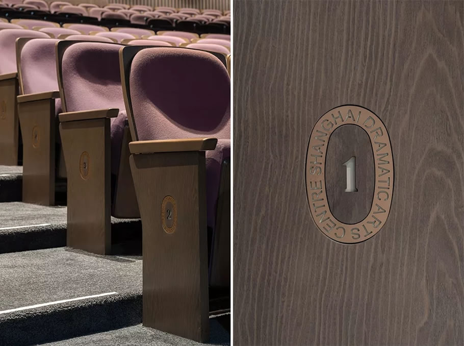 ▼观众厅坐席及号码牌细部,details of seats and number plates in the auditorium