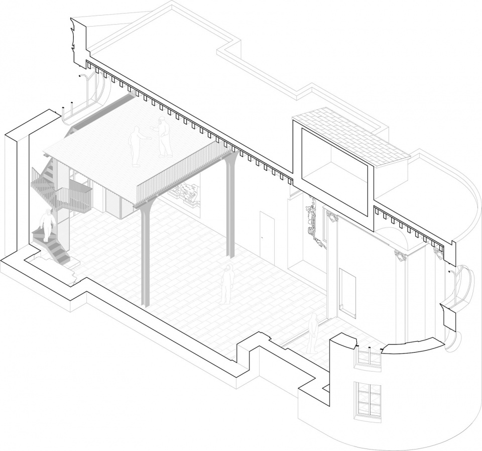 该项目是对一座古老教堂的修复与改造,将其转变为一个小型会议与活动厅。为了营造一个私密且具有高度感的空间,设计在教堂内新建了一座钢结构的“cantoria”(唱诗班阁楼)。
