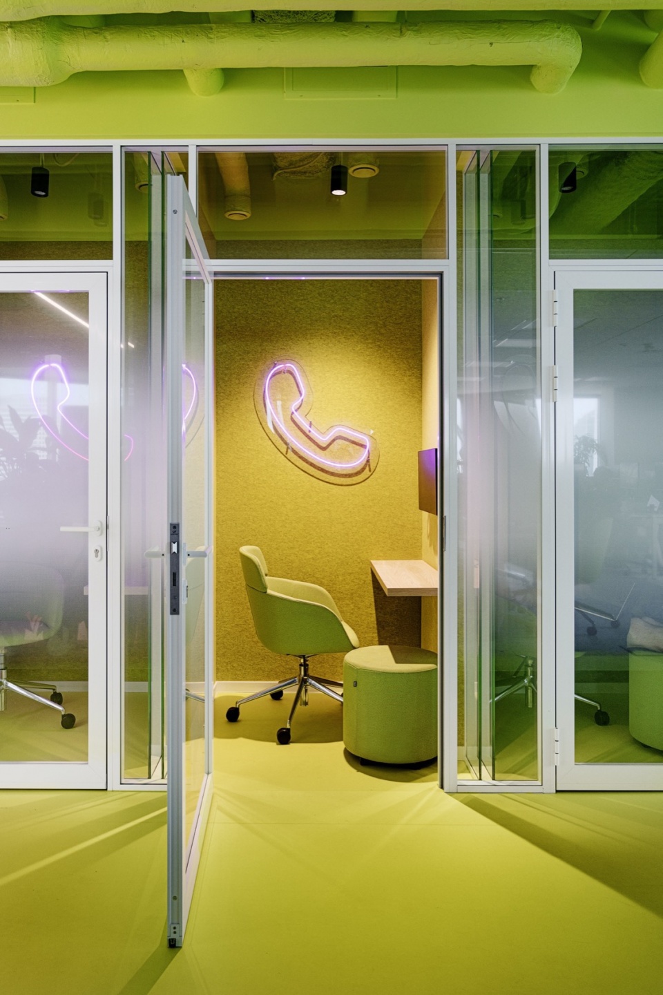 柔和的自然色调带来平静感,并创造一个有助于专注和宁静的环境。引入绿植改善空气质量并对用户产生舒缓效果。该理念的核心元素是HCL(以人为本的照明)。“非侵入性的照明,优化昼夜节律——根据时间调整颜色和强度——支持集中注意力并改善日常功能。”她补充道。工作舒适性通过深色光学镜片和带有内置棱镜扩散器的灯具得到进一步提升,减少了眩光。