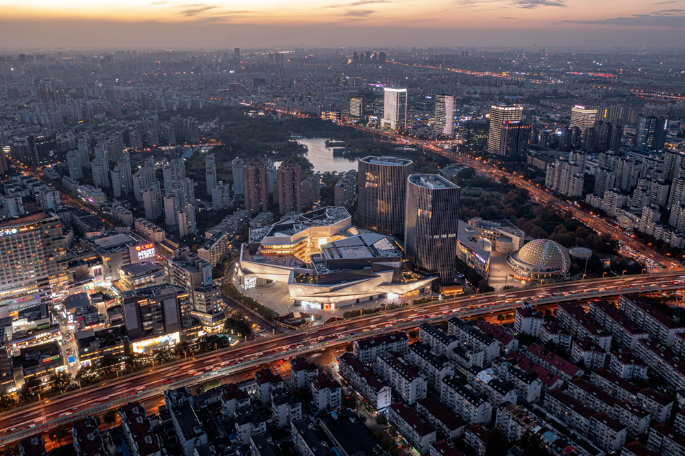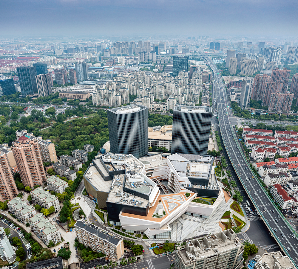 In the project, a large circular mall with an outer diameter of about 180 meters is placed in the south of the middle of the plot, adjacent to Daning Road, and connected with Daning International from north to South; Put the most famous department store on the west side of the project in the form of a main store, and make the department store have an independent facade image and a noble drop off square; The cut corner office twin towers are integrated with the multi corner commercial podium. The twin towers are placed at an included angle of 48 degrees, which not only avoids the impact on the sunshine of the existing residence, but also enjoys the ecological and urban double-sided landscape of Daning Park and Gonghe new road to the greatest extent.