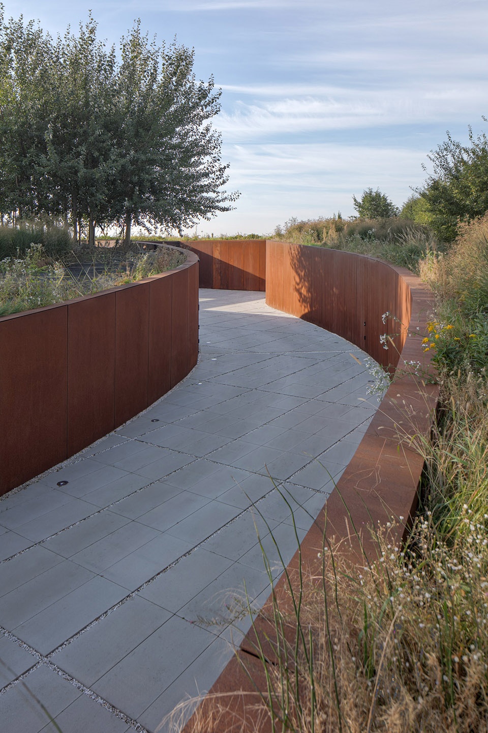 ▼采用耐候钢板包覆,clad with corten steel panels