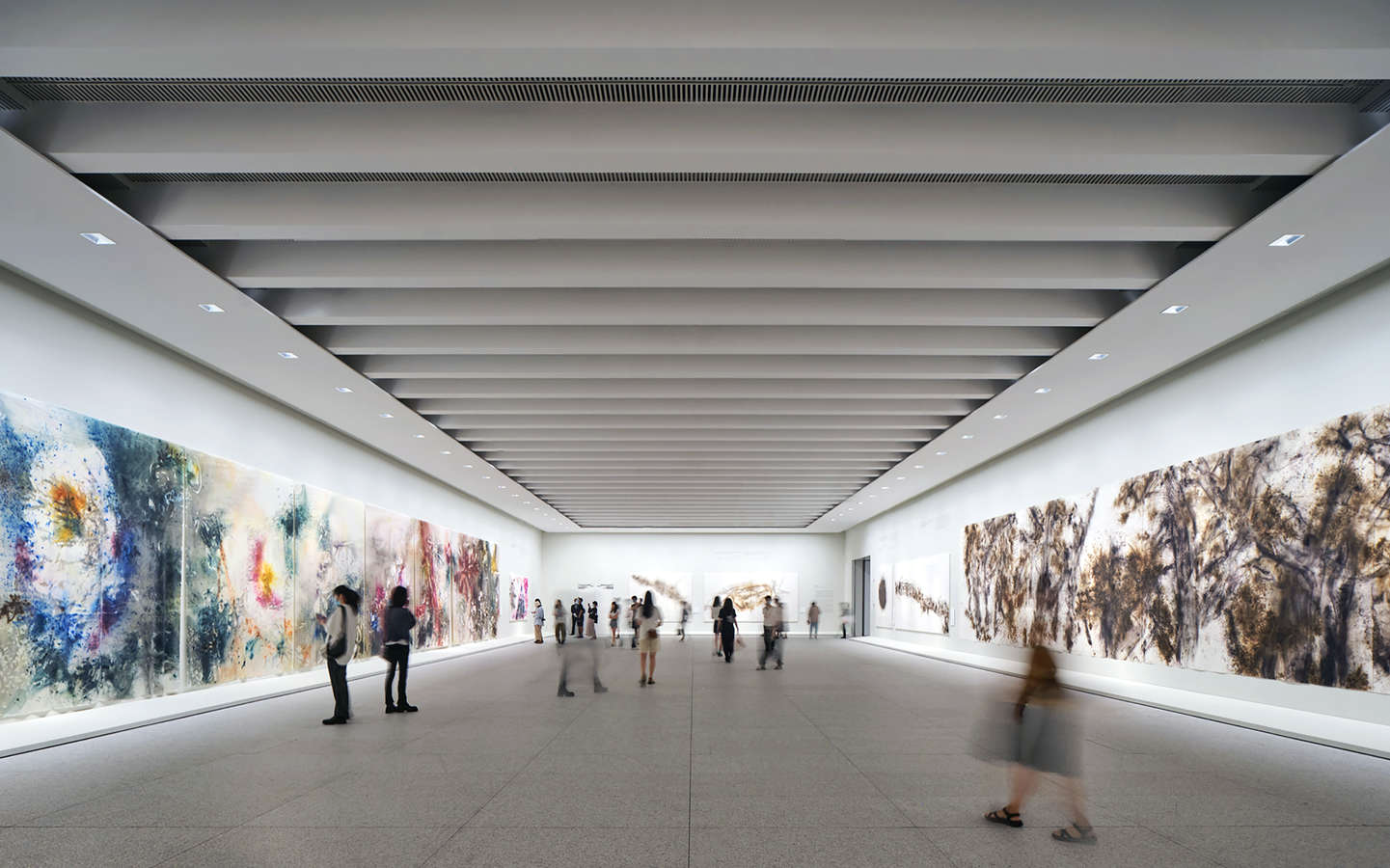 浦东美术馆内部。浦东美术馆建筑共39724平方米,分地上4层,地下两层,包括了13个大小不一的展厅。除了2个面向外滩的“镜厅”外,贯穿4层30米的“X展厅”也是特色之一。