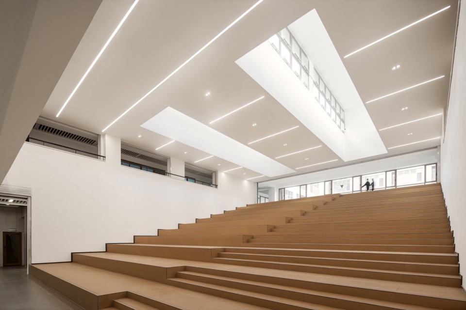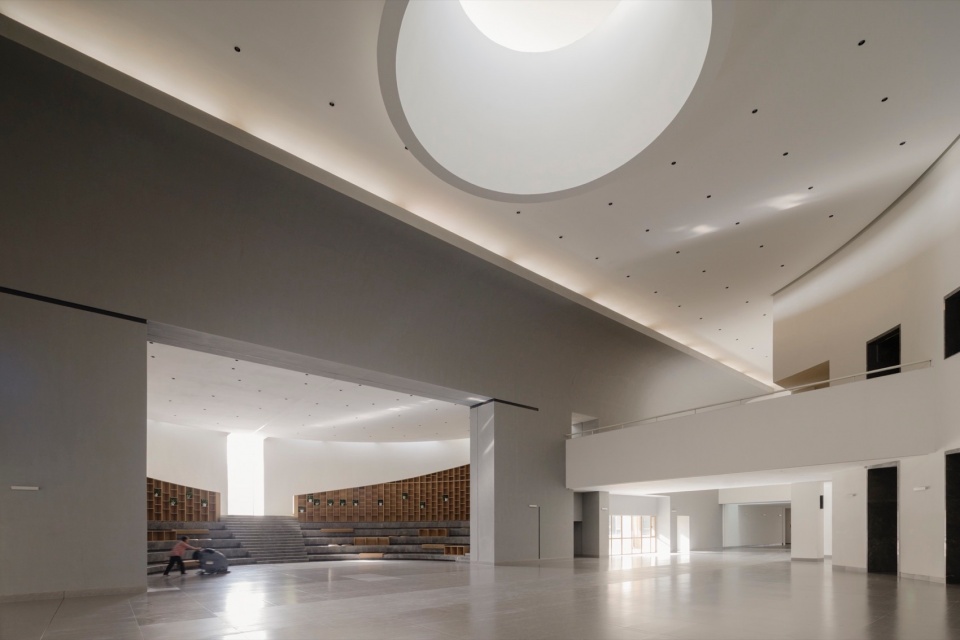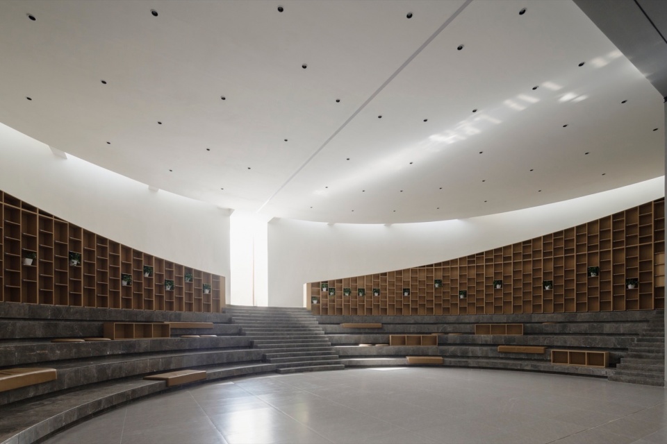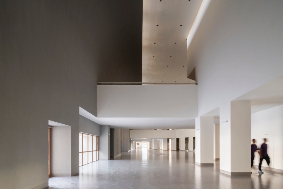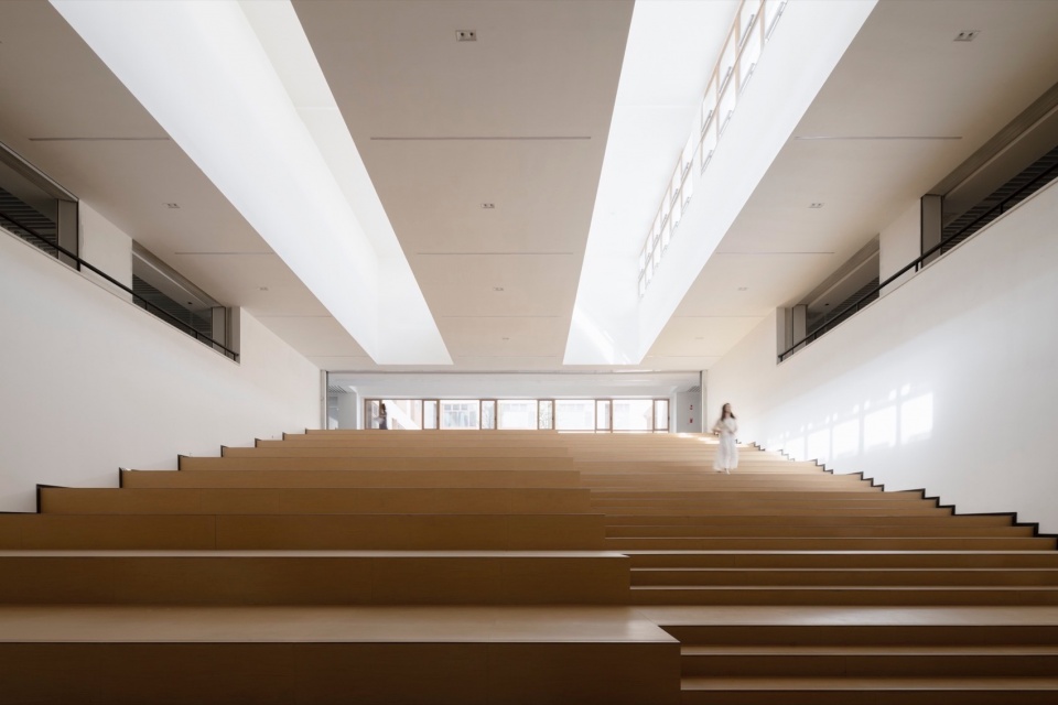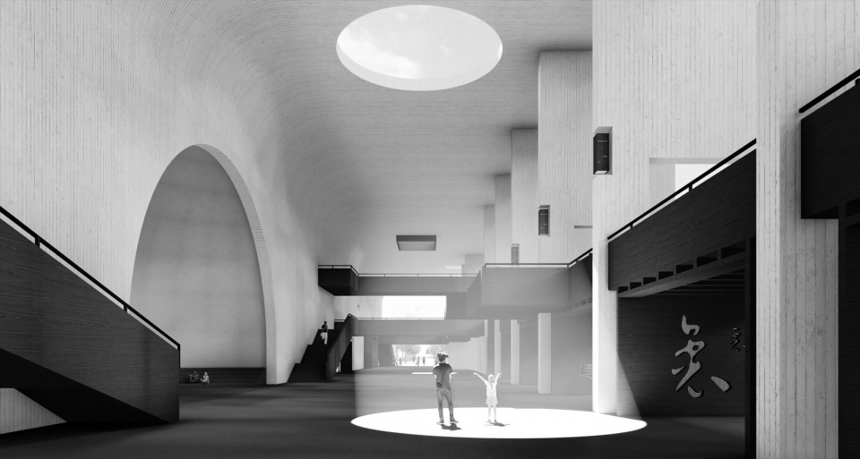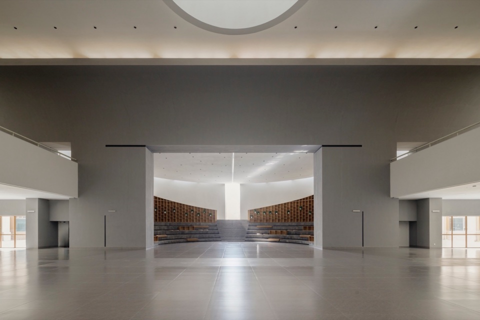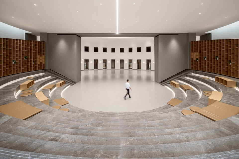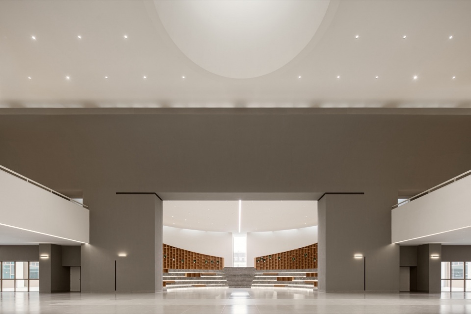 街市的中心是一个殿堂,虽然这两者的物理界面是连续的,但殿堂通过光影与尺度的转换,产生一种空间室内外不断转换的错觉,迅速让人情绪从沉静转为激昂。这个中心不止是知识的殿堂,更是人的殿堂:它是辩论赛的舞台,是画展的展厅,是毕业典礼的会场…… 设计在此歌颂的不只是知识的神圣,更是对人自身无限可能的赞美。