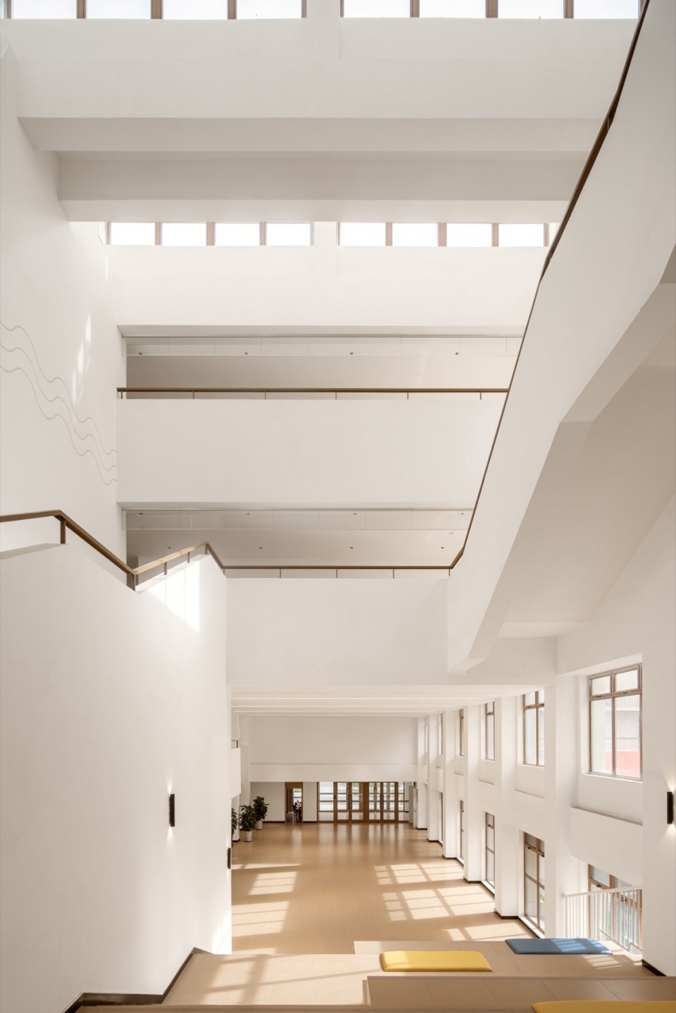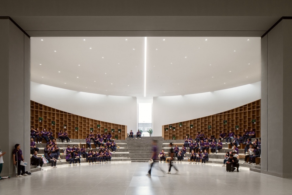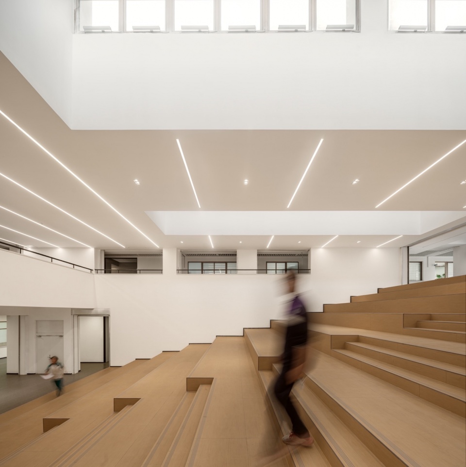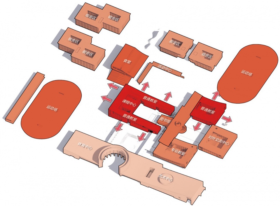 The pressure of the Gaokao (National College Entrance Examination) forces high school students to spend 70% of their time within their assigned classroom groups. As a result, campus planning exhibits a pattern of diminishing intensity radiating outwards from the core of standard classrooms. Unlike primary and middle school students, although burdened with heavy academic workloads, high schoolers’ interaction patterns already resemble those of adults. Their spaces consequently need to possess stronger societal characteristics. “Looking like a university” became the core design goal – aiming to both accommodate the demands of intensive study and present spaces for adult-like autonomy and interaction.