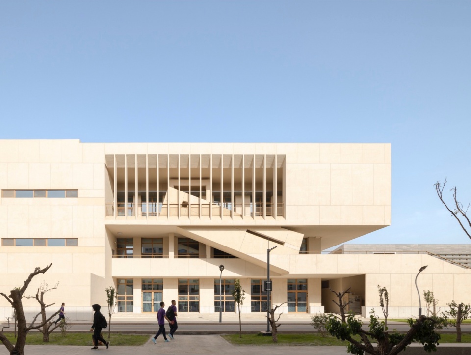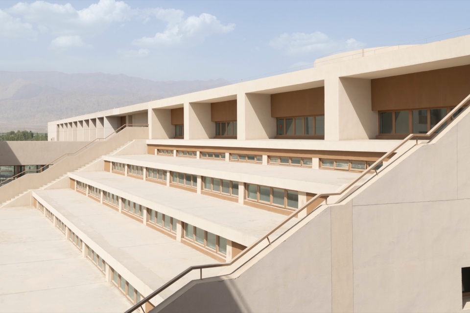 The orthogonal grid is the most effective weapon against the extreme environment, but we avoided creating a homogeneous, rigid system. Through variations in scale and the superposition of multiple grids, the building complex naturally gives rise to outdoor spaces of diverse sizes – serving as both barriers against wind and sand, and playgrounds where students can run and linger.