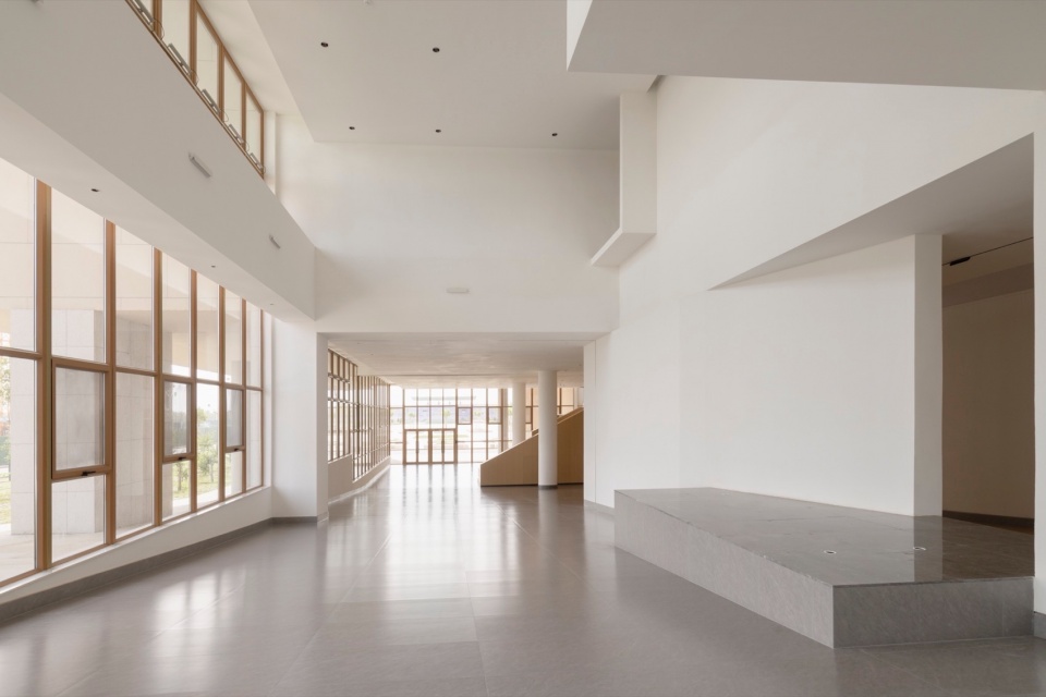 The design of the teaching building employs an intriguing tiered nesting pattern: from class groups to grade groups, and then to clusters. This hierarchical structure lends the architecture distinct organic growth potential and modular interchangeability. The clusters for Grade 10 and Grade 11 form the core of the teaching zone. Together with the Grade 12 cluster to the north, the specialized classroom cluster to the south, and the external exchange center to the east, they enclose a serene water courtyard. Each unit further incorporates its own smaller courtyard, allowing students to stumble upon diverse plays of light and shadow, and experience shifting scales as they move through the spaces. Within these spatial transformations lie reflections of the students’ developmental stages and the nuances of their social interactions.