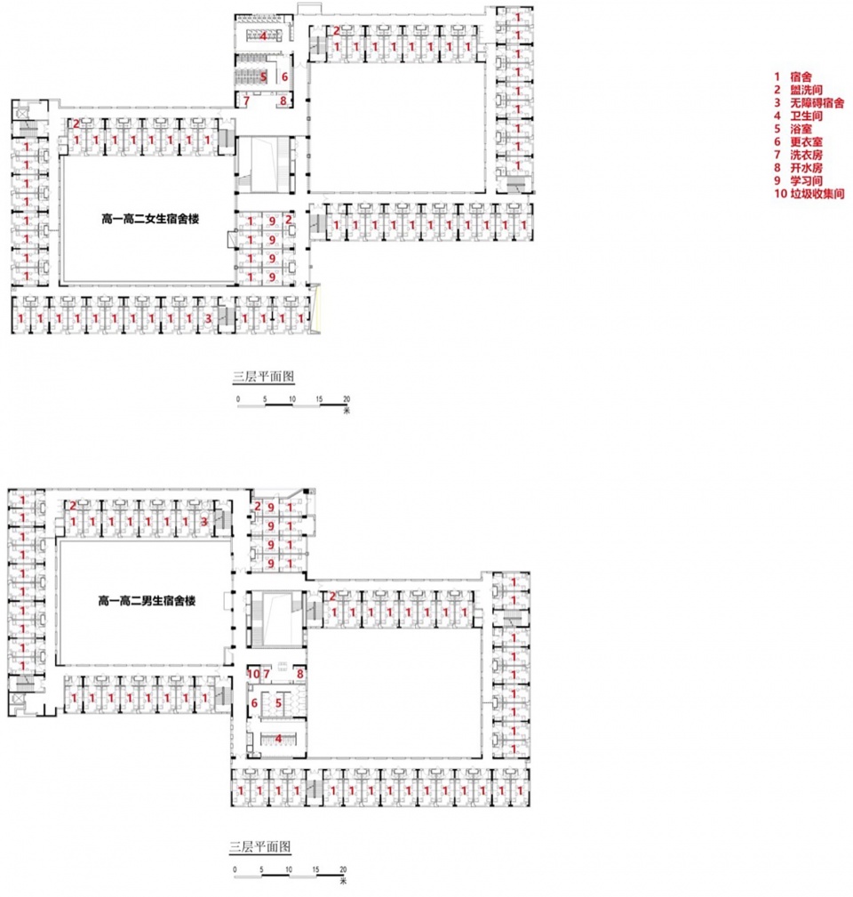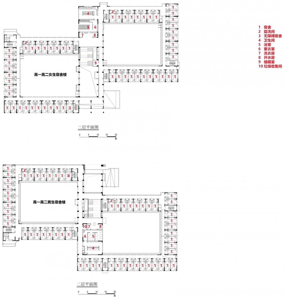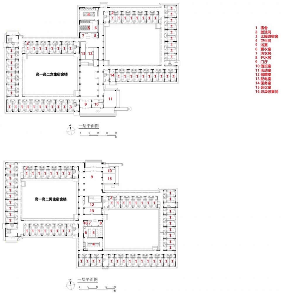 ▼高一高二宿舍平面图,plans of the dormitories for Grade 10 and Grade 11