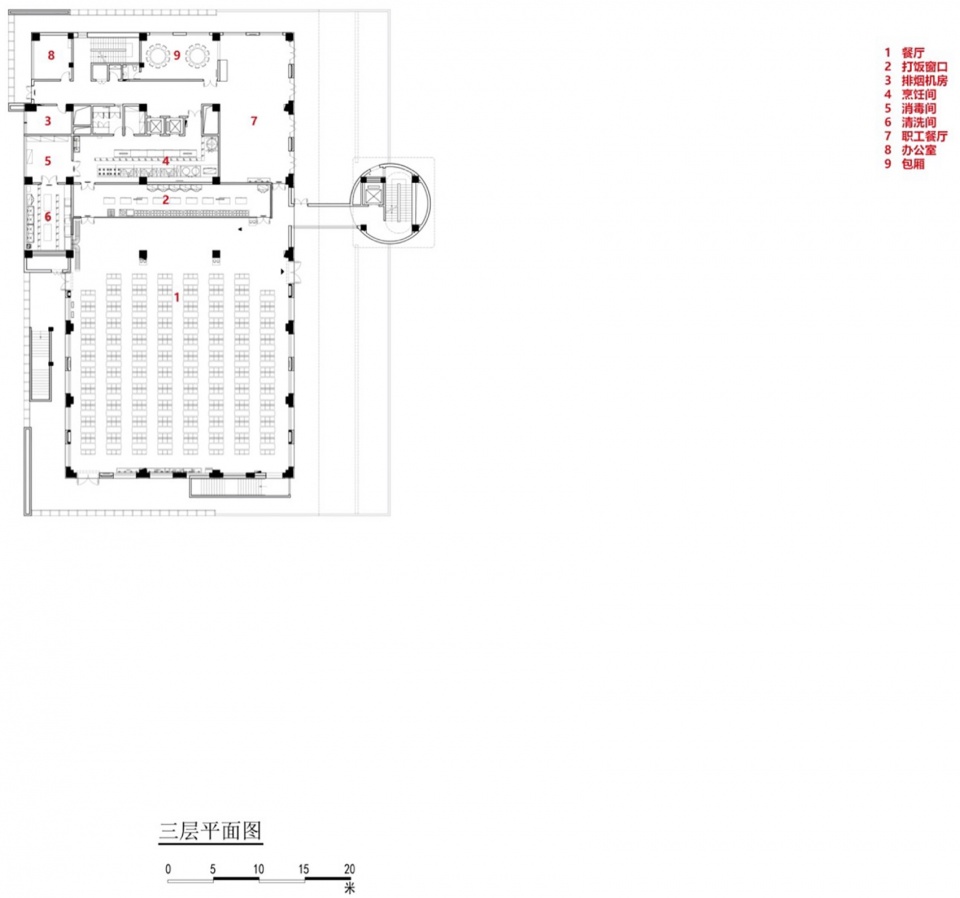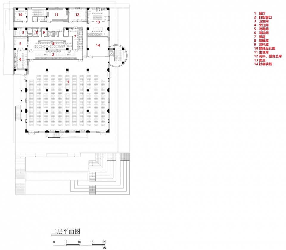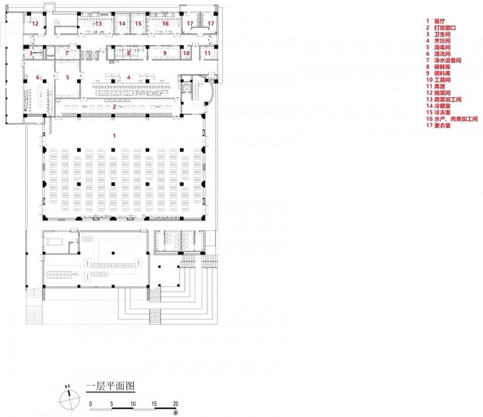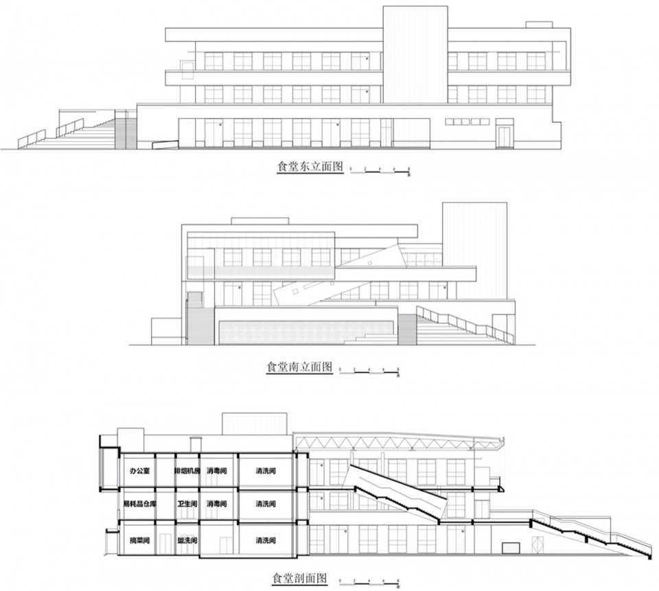 ▼食堂立面图与剖面图,elevations and sections of the canteen