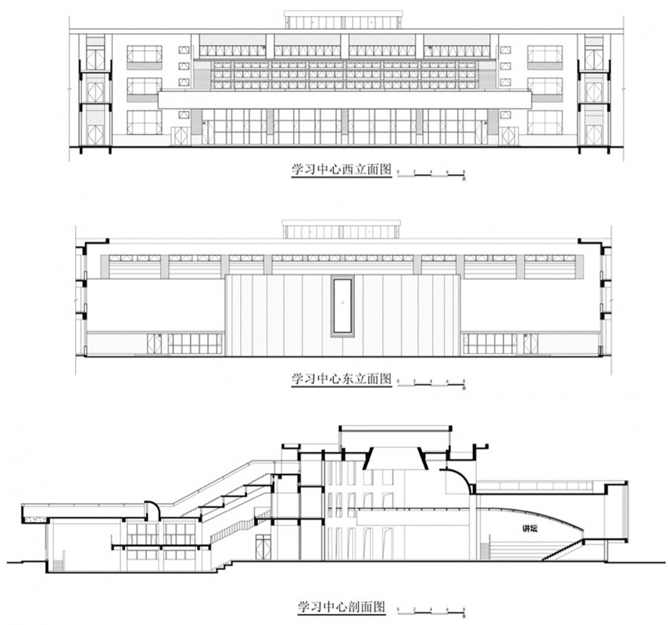 ▼学习中心立面图与剖面图,elevations and sections of the learning center