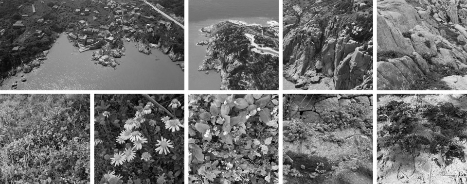 在深入黄龙岛的实地勘测中,设计团队认真阅读了黄龙岛地表特征。黄龙岛的轮廓并非温和的弧线,礁石粗粝的肌理形成了浙江较为典型的折线型海岸线形态。巨大的礁石构成明确的高差,丰盛而茂密的植物几乎覆盖了每一寸岩土。由于常年经受猛烈的海风侵袭,岛上无大型乔木生长,多为丛生低矮的灌木,以及海岛特有的植物品种如:剑麻、 落叶海桐,及较少见的景天科植物。黄龙岛属北亚热带季风海洋性气候区,气候冬暖夏凉,温和湿润,雨量中等,全年多大风。春季浓烈的海雾常笼罩着黄龙岛,天空和海洋完整地暴露在视野之中,却又是朦胧的景象。