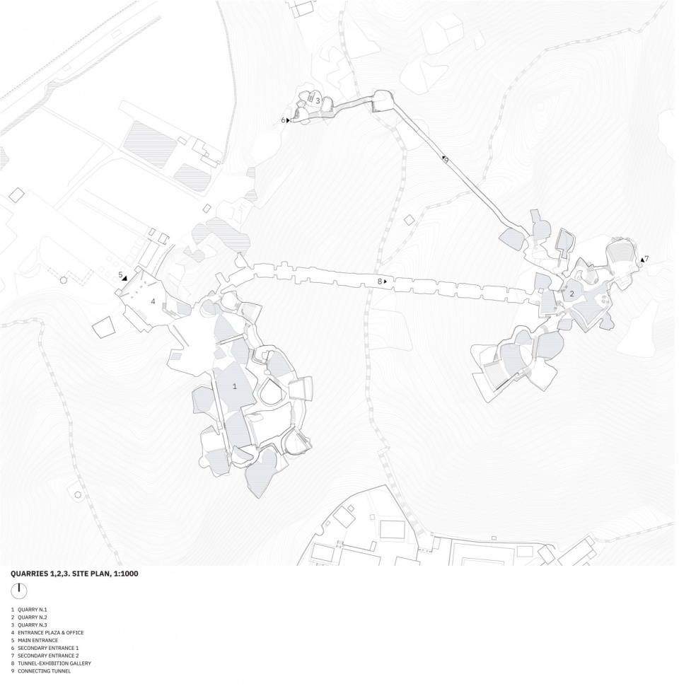 The original tunnels connecting the three quarry have been transformed into exhibition spaces, achieving the goal of rationally utilizing the interior areas with minimal intervention.