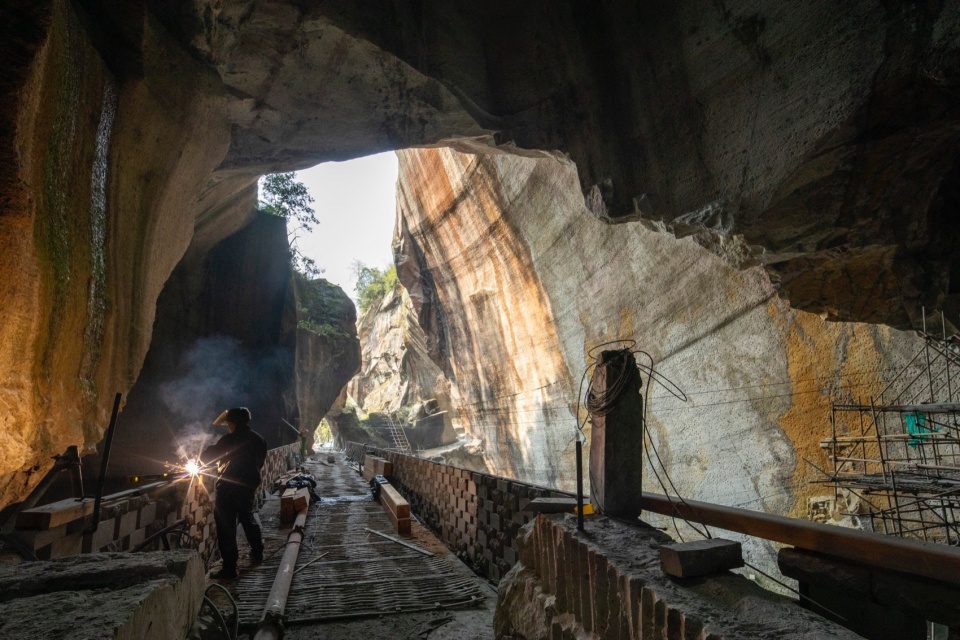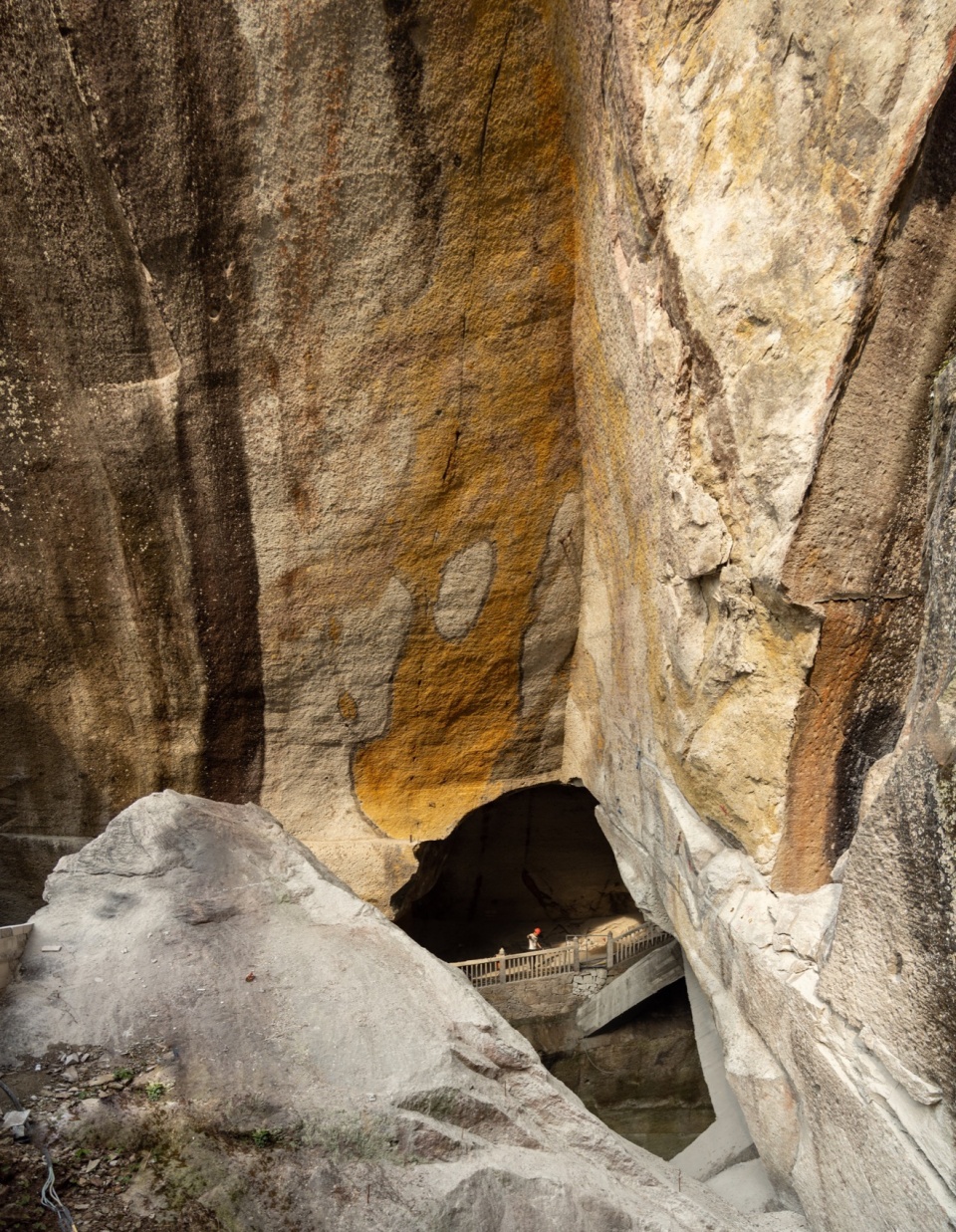 The Huangyan Quarry began large-scale stone extraction in 675 AD, during the second year of the Tang Dynasty’s Shangyuan era. This quarrying activity was undertaken to support the construction of Yongning County and the prefectural city. Over centuries of continuous quarrying, a spectacular complex of artificial caves was formed. These include towering, hundred-meter-high slate cliffs, deep and expansive chambers, and dozens of interconnected caverns creating an impressive man-made cave system.