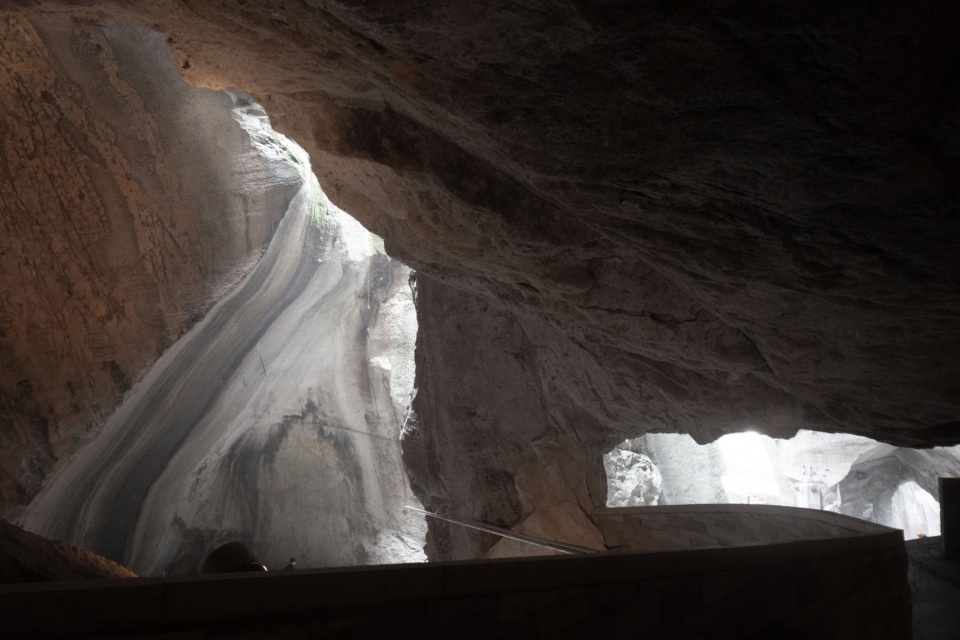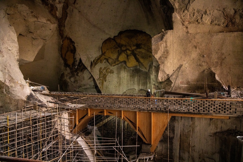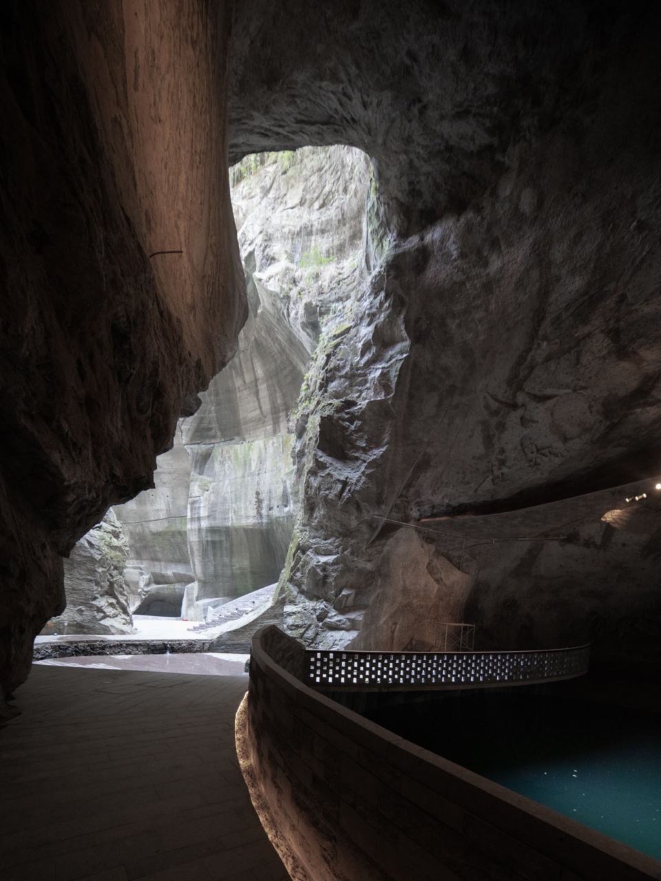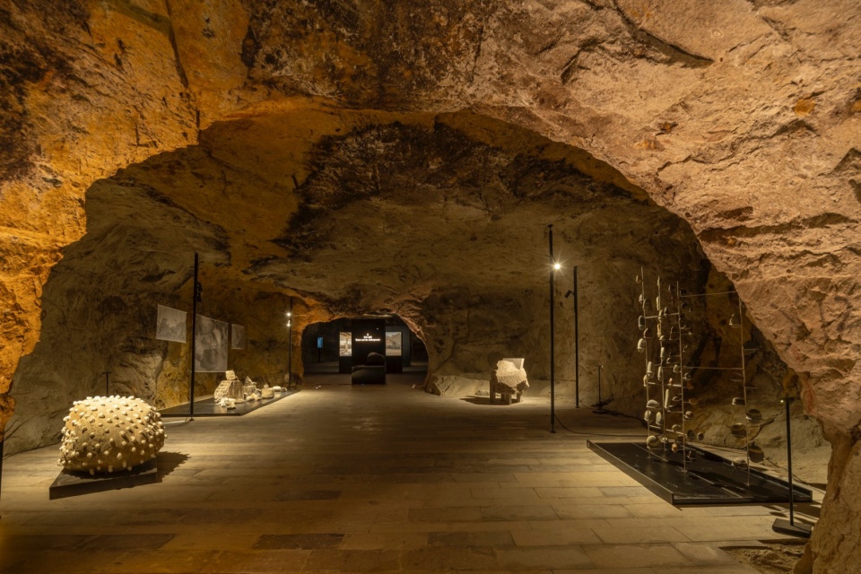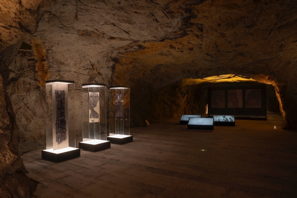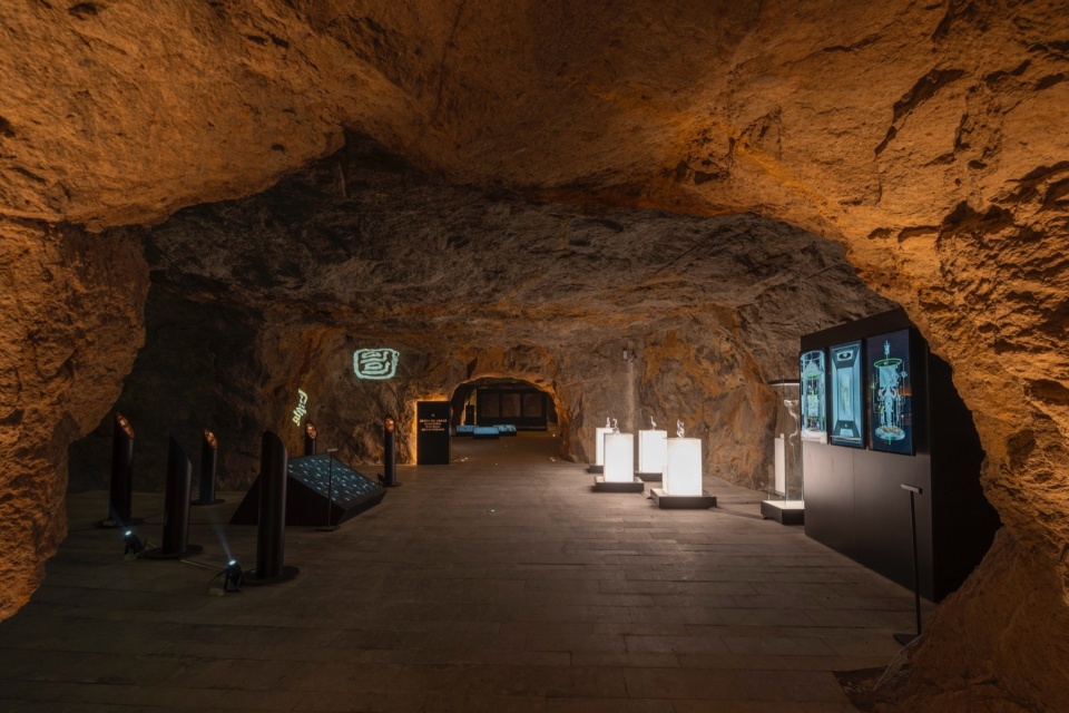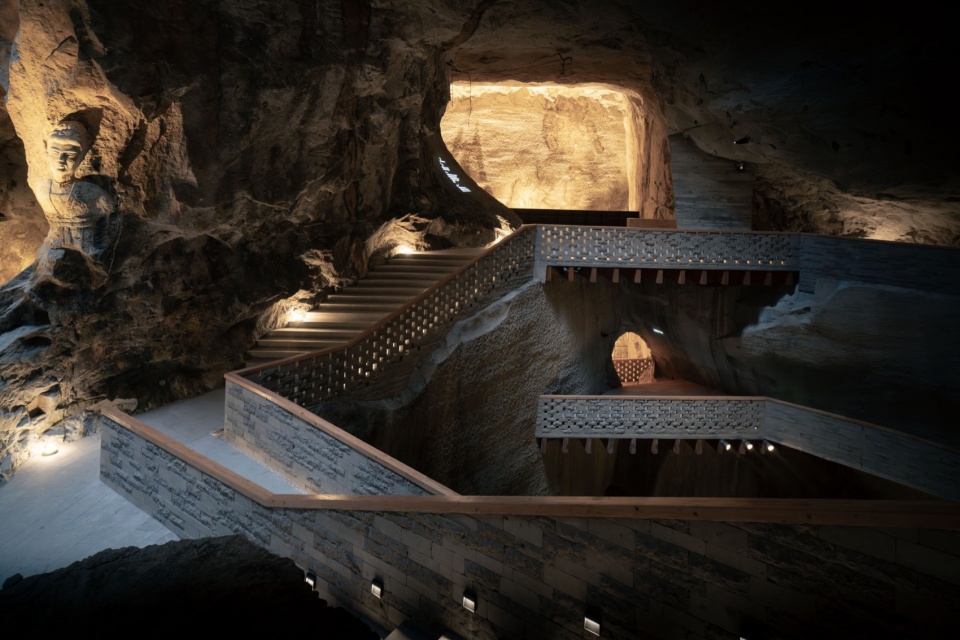 原本用于连通三个石窟之间的隧道也被改造为展览空间,达到以最小干预的方式合理利用石窟内部空间的目标。