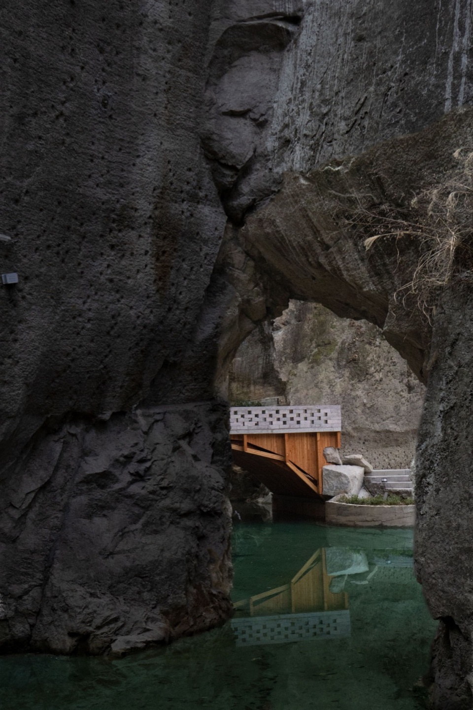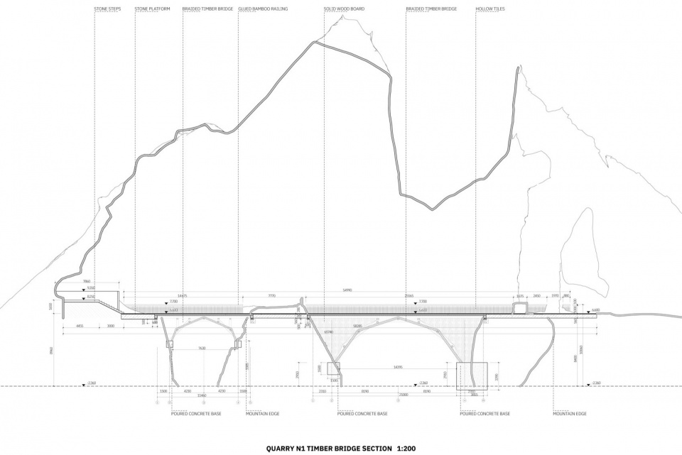 For the circulation route planning, woven timber arch bridges are incorporated to serve two main purposes. Firstly, they act as cultural symbols reflecting the local landscape aesthetics. Secondly, their structural form effectively addresses the narrow quarry entrance and constrained construction conditions by allowing components to be prefabricated in smaller units and assembled on-site.