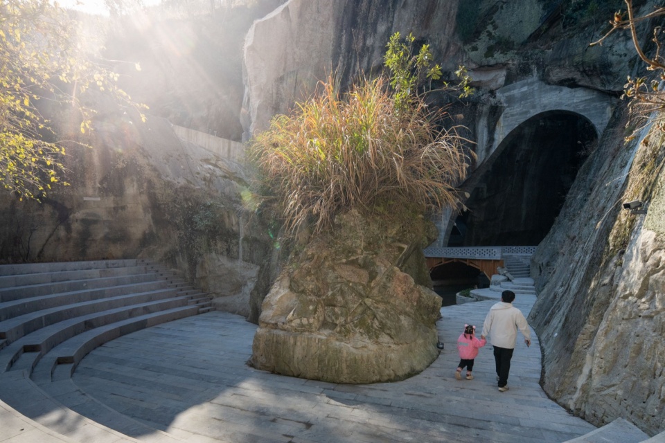 设计方案强调最小干预,保留场地独特的地质特征,同时改造为公共用途。该项目旨在创造一个”城市客厅”,让来访者能够接触黄岩当地的文化和自然环境。通过将废弃的石窟转变为多功能空间,它成为了文化活动和社区聚会的展示场所。