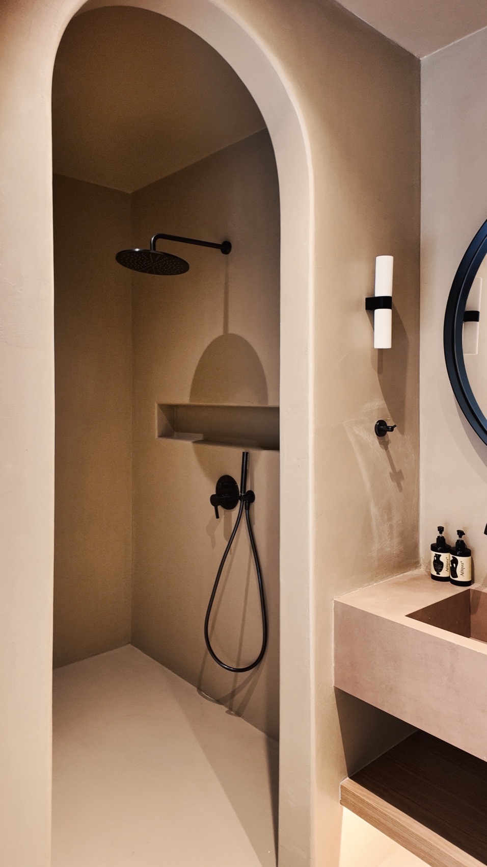 所有客房的家具与灯具均为定制设计或精心甄选,贯彻简约自然、亲生物的设计理念,强调有机纹理、手工细节与天然材料的使用。房内摆放着由克里特摄影师 Georgios Anyfantakis 拍摄的作品,并搭配当地工匠制作的雕塑感咖啡桌与木质衣柜。所有洗护用品均选用100%可生物降解的本地品牌Oceanis Cosmetics,为宾客营造沉静、专注与归属感并存的居住体验。