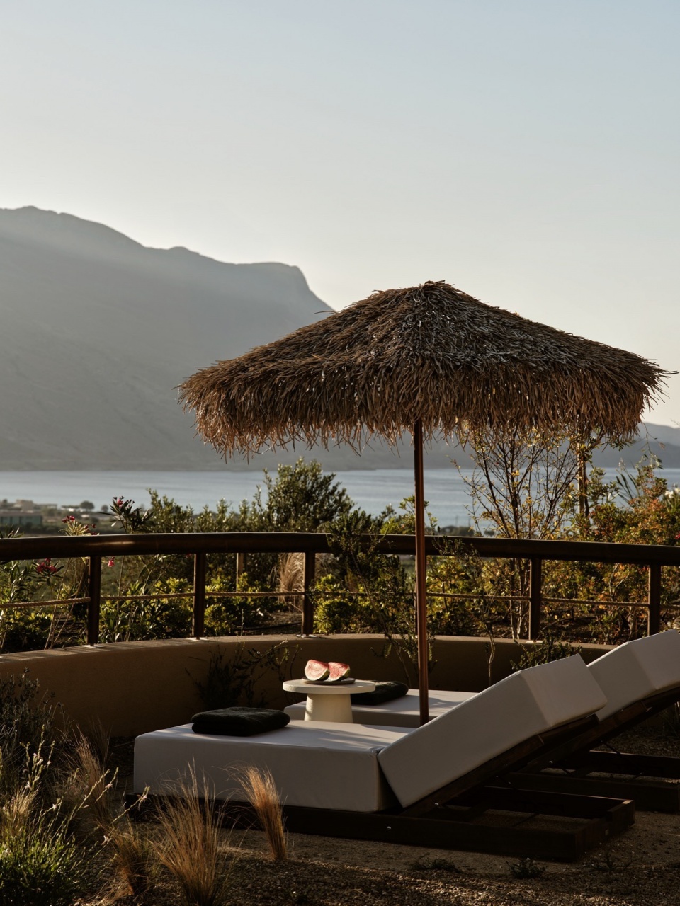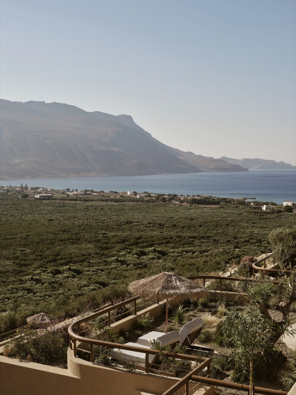 With a name stemming from Tellus, the ancient Roman goddess of the Earth, and the Greek words therós (summer) and therismós (harvest), Tella Thera is a new, nature-inspired boutique resort rooted in consciousness, connection, and conservation. Opened in mid-July and located in Kissamos Bay along Crete’s northwestern coast, the property was crafted to promote relaxation and wellbeing after days spent exploring some of the island’s most remote and beautiful beaches, gorges, mountains, and cliffsides. From the initial conception to finishing touches, everything is centered on respecting the natural world.
