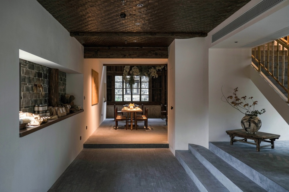 Nestled in a quiet corner of the northwest side of Jiazhi Street District in Jiaojiang, Taizhou, the renovation of this building has realized a living aesthetic space that engages all senses—sight, touch, smell, and taste—bridging art and design, beauty and functionality. It is also a multifunctional social space integrating an art restaurant, local cultural products, folk craft revival, exhibition curation, and design.