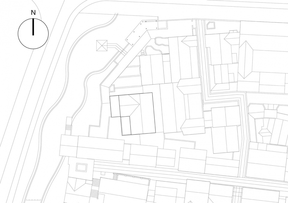 建筑在改造的过程中基本保留了原有的空间布局。原布局最大的特点之一便是,绕着一个侧向庭院U型组织的三段形式与尺度不同的空间,这种不对称性塑造出独特的内在动态,因此后续的设计也再次围绕院子展开,挖掘旧建筑的特质并结合新的需求进一步强化。