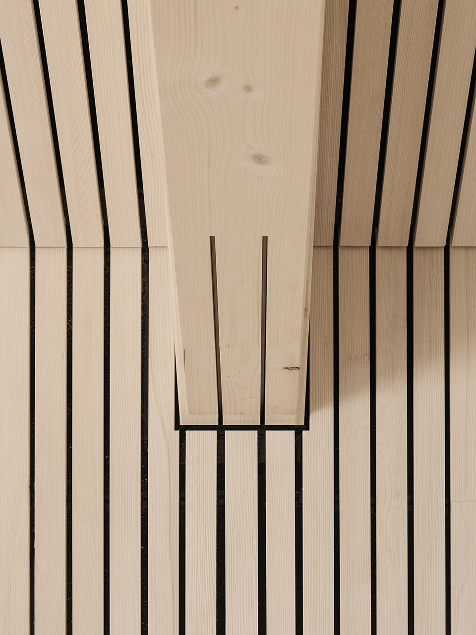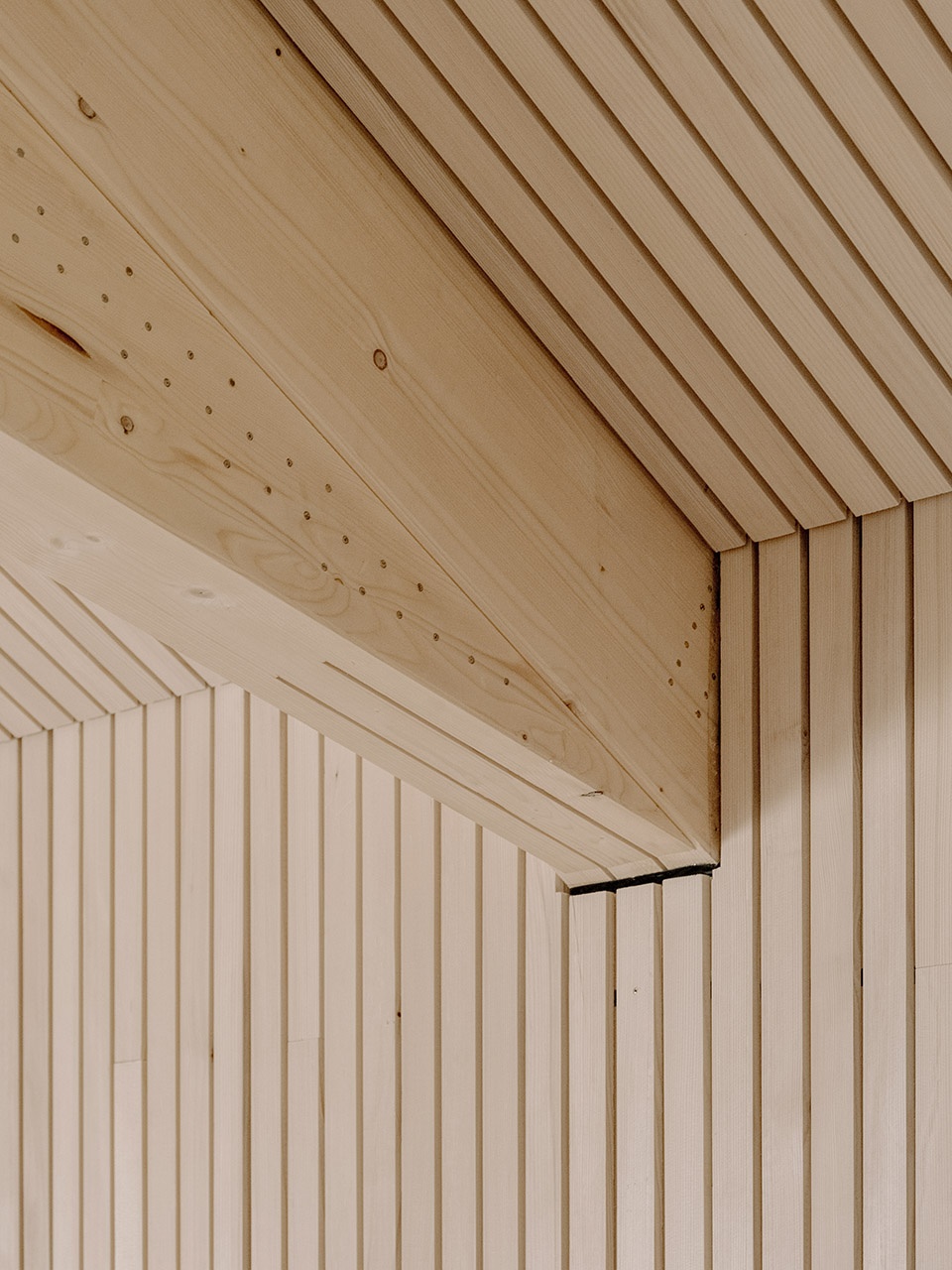 The column-free span of fifteen meters provided by the existing building is achieved using trusses, which also form the interior.