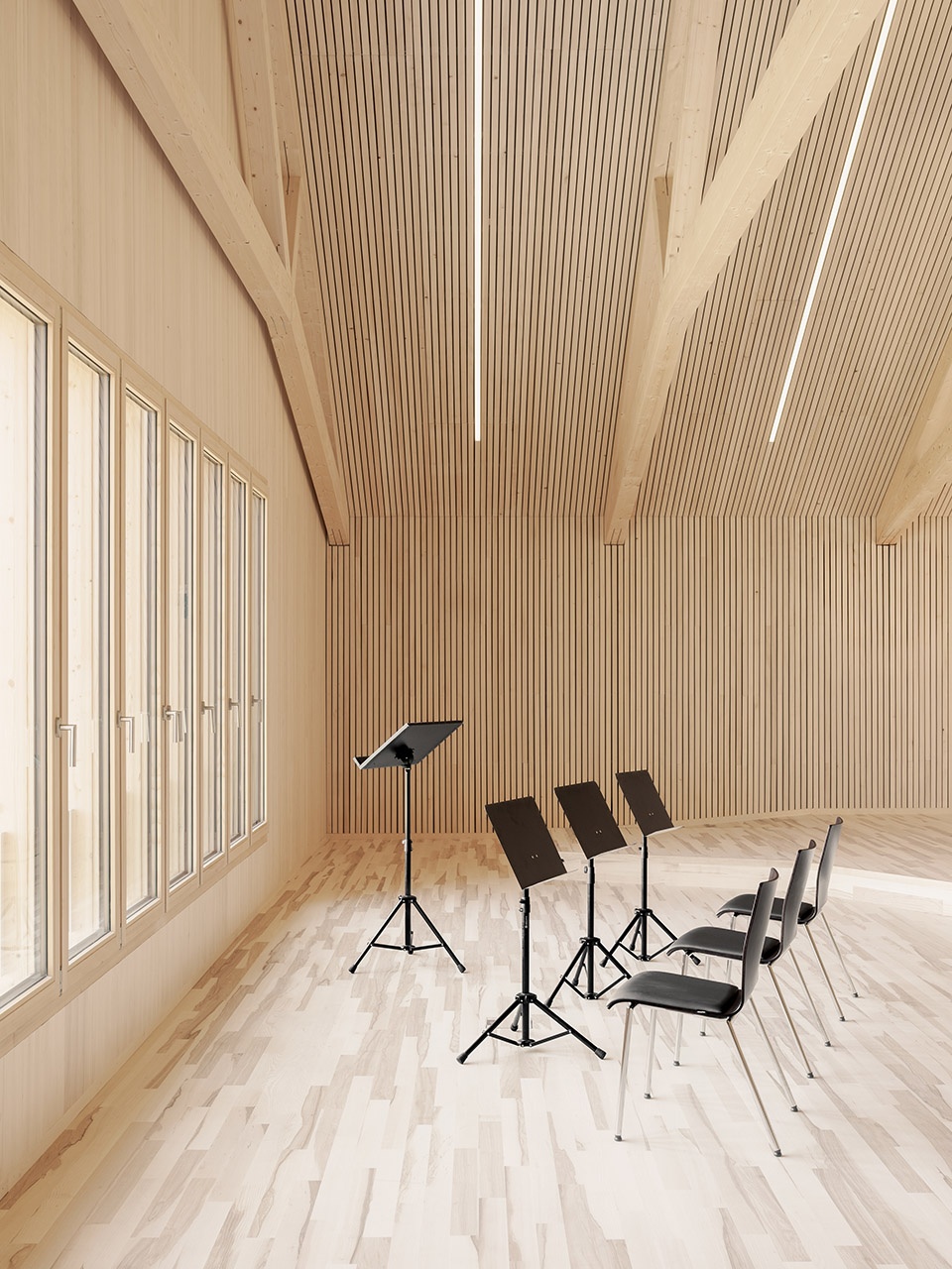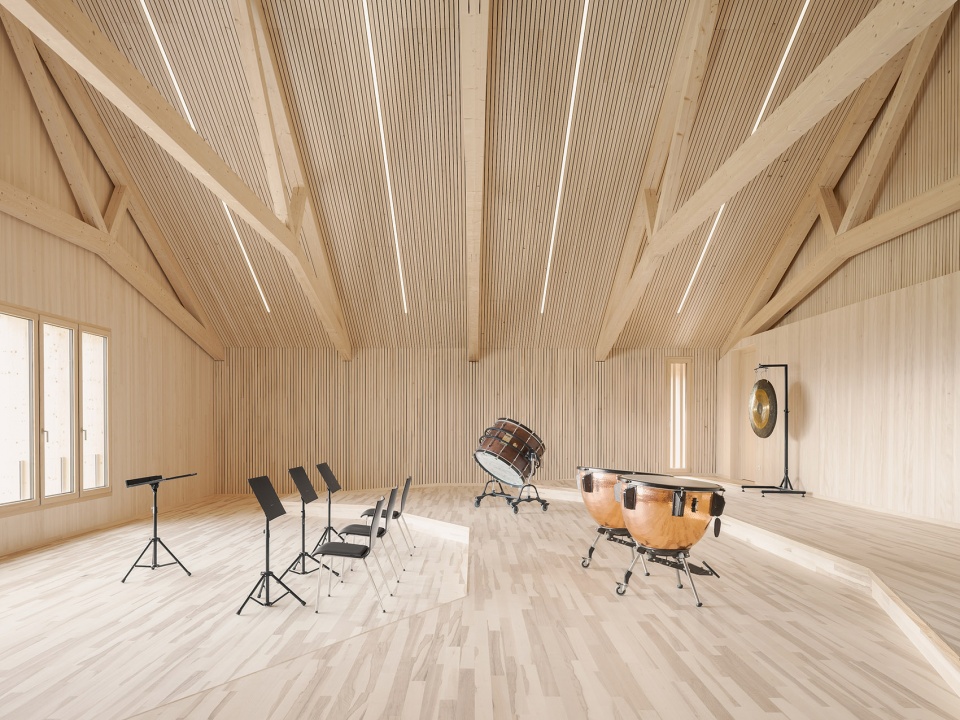 Due to the increasing population in Langen bei Bregenz, kindergarten places had to be created in the municipality. At the same time, the community center needed to be adapted to the increasing requirements. The community has a lively club life and the music club in particular needed suitable premises.